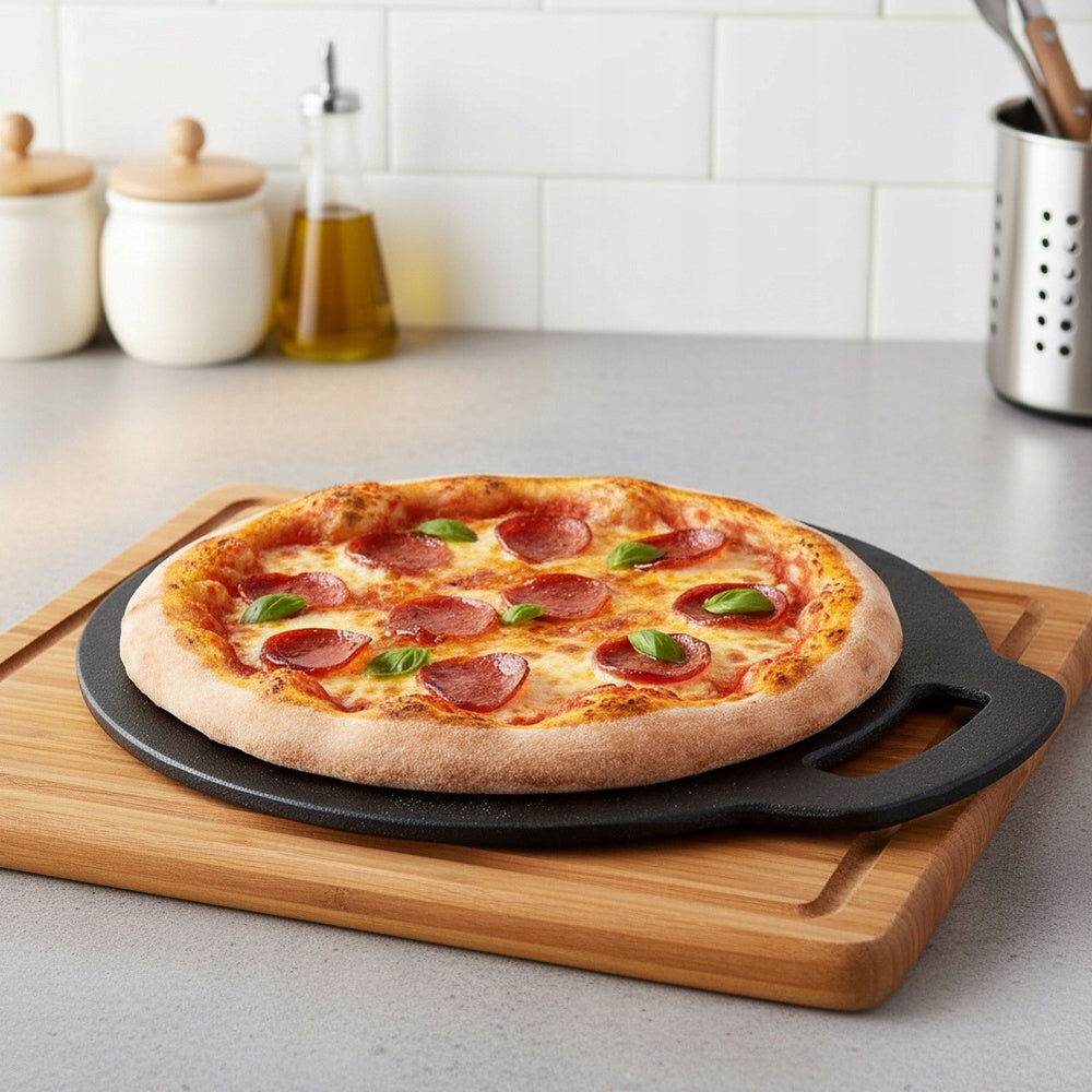 Ketaus plokštė yra ilgaamžis virtuvės įrankis, vertinamas dėl savo unikalių savybių. Ji idealiai tinka maistui, kuriam reikia aukštos ir tolygiai pasiskirstančios temperatūros, pavyzdžiui, picai kepti, nes ji veikia kaip tikras akmuo, užtikrinantis trapią plutelę. Ketaus gebėjimas ilgai išlaikyti šilumą reiškia, kad galite ruošti maistą net ir ant silpnesnės ugnies, o patiekalai ilgiau išlieka šilti. Laikui bėgant, tinkamai prižiūrint, ketaus paviršius įgauna natūralią nelipnią dangą, kuri kas kartą pagerina kepimo kokybę ir palengvina priežiūrą. Tai investicija į jūsų virtuvės funkcionalumą ir patiekalų skonį daugybei metų.