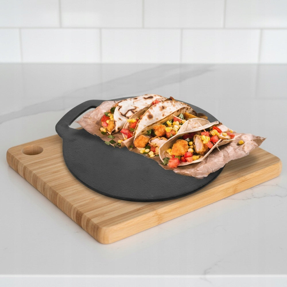 Susipažinkite su universalia ir tvirta ketaus plokšte, kuri taps jūsų virtuvės karaliene. Ši plokštė, pagaminta iš aukščiausios kokybės ketaus, puikiai tinka ruošti traškius lietinius, meksikietiškus papločius (tortillas), gardžius blynus ar net nepakartojamą picą tiesiai jūsų orkaitėje. Jos masyvi konstrukcija ir svoris užtikrina nepriekaištingą šilumos pasiskirstymą ir ilgalaikį karščio išlaikymą, todėl kiekvienas patiekalas bus tobulai iškeptas. Dėl savo universalumo, ši ketaus plokštė tinkama naudoti ant visų tipų viryklių, įskaitant indukcines, elektrines, dujines ir keramines, taip pat tiesiai ant laužo ar grilio.