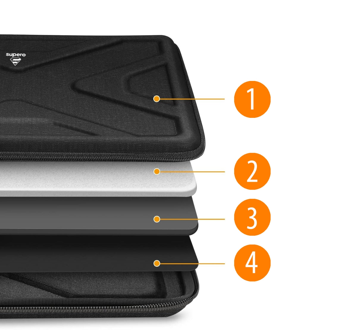 Supremo dėklas pasižymi išskirtiniu tvirtumu ir ilgaamžiškumu. Jo keturių sluoksnių apsaugos sistema garantuoja maksimalų jūsų įrenginio saugumą keliaujant ar tiesiog nešiojantis kasdien. Dėklo išorė pagaminta iš įbrėžimams atsparios poliesterio audinio, o vidinė dalis paminkštinta EVA putplasčio sluoksniu, kuris puikiai sugeria smūgius. Papildomas 4 mm amortizuojantis pamušalas ir elastingas Lycra dangtelis užtikrina, kad jūsų nešiojamasis kompiuteris liktų saugus net ir netikėtai nukritus ar patyrus stipresnį poveikį. Dvipusiai užtrauktukai leidžia greitai ir patogiai pasiekti savo įrenginį.