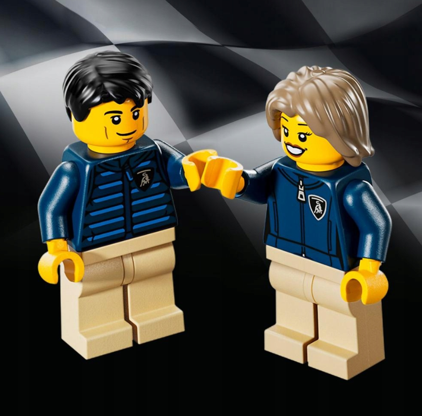 - LEGO Speed Champions / lenktynių stiliaus elementai su spoileriais, dekoratyviniais lipdukais.