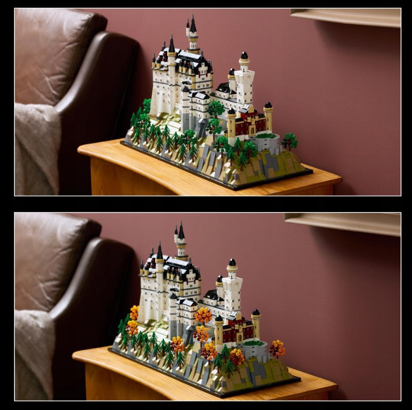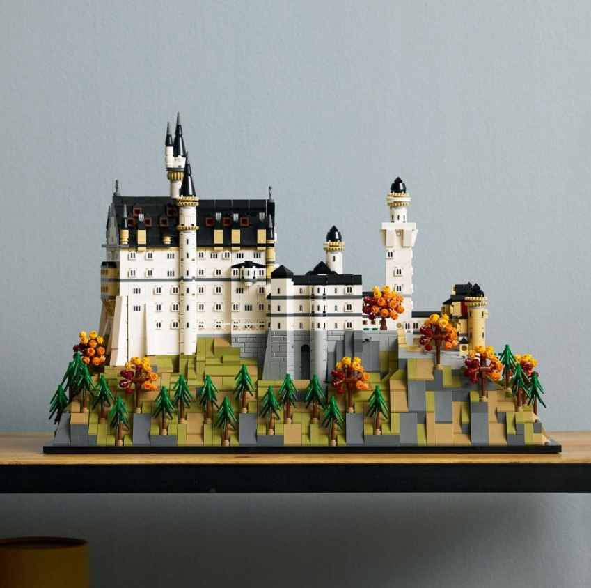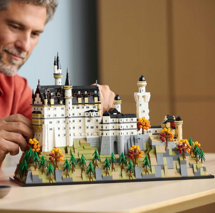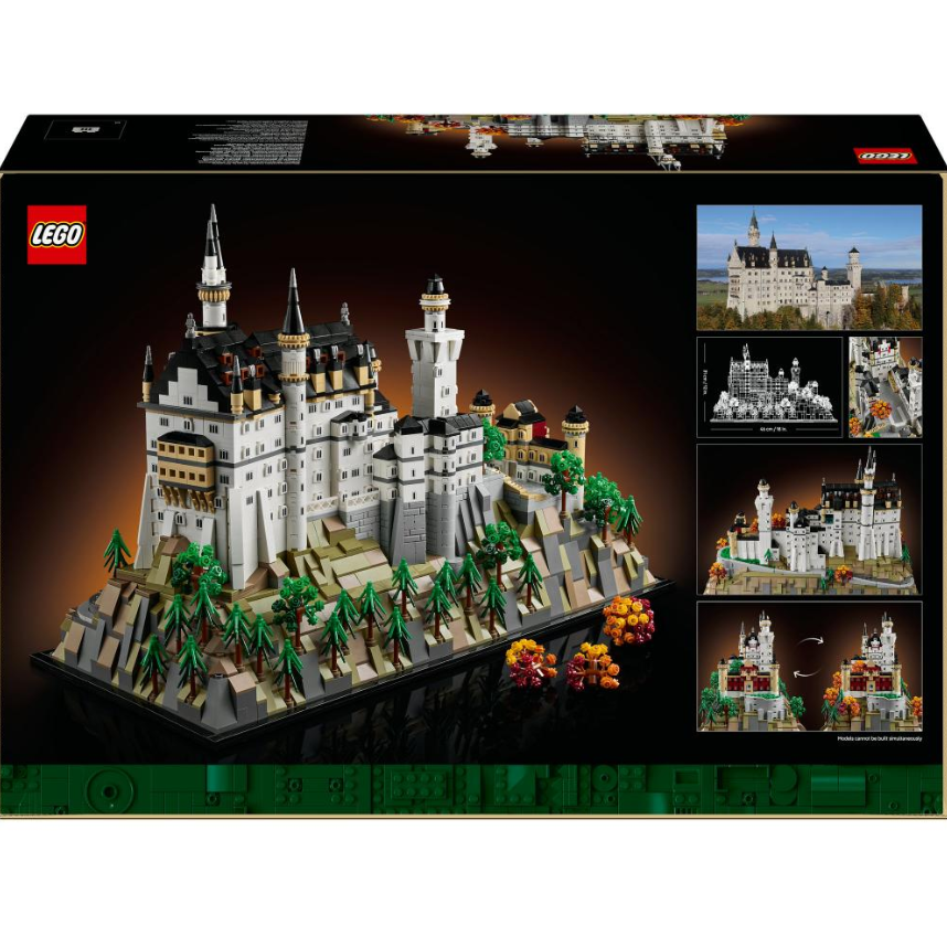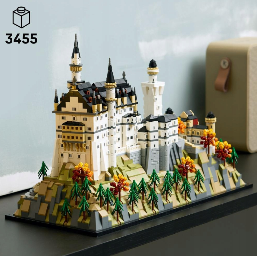 Konstruktorius sudarytas iš 3455 detalių, o modelio apimtys – ~ 31 cm aukščio, ~ 46 cm pločio ir ~ 20 cm gylio – tai išties įspūdinga replikacija. Baigę statyti galėsite mėgautis pilies išorės grožiu bei keletu mažų vidinių detalių, taip pat pakeisti aplinkos medžių lapiją, kad atspindėtų vasaros arba rudens kraštovaizdį. Detalios instrukcijos ir LEGO Builder programėlė leis žingsnis po žingsnio sukurti tikrovišką modelį.