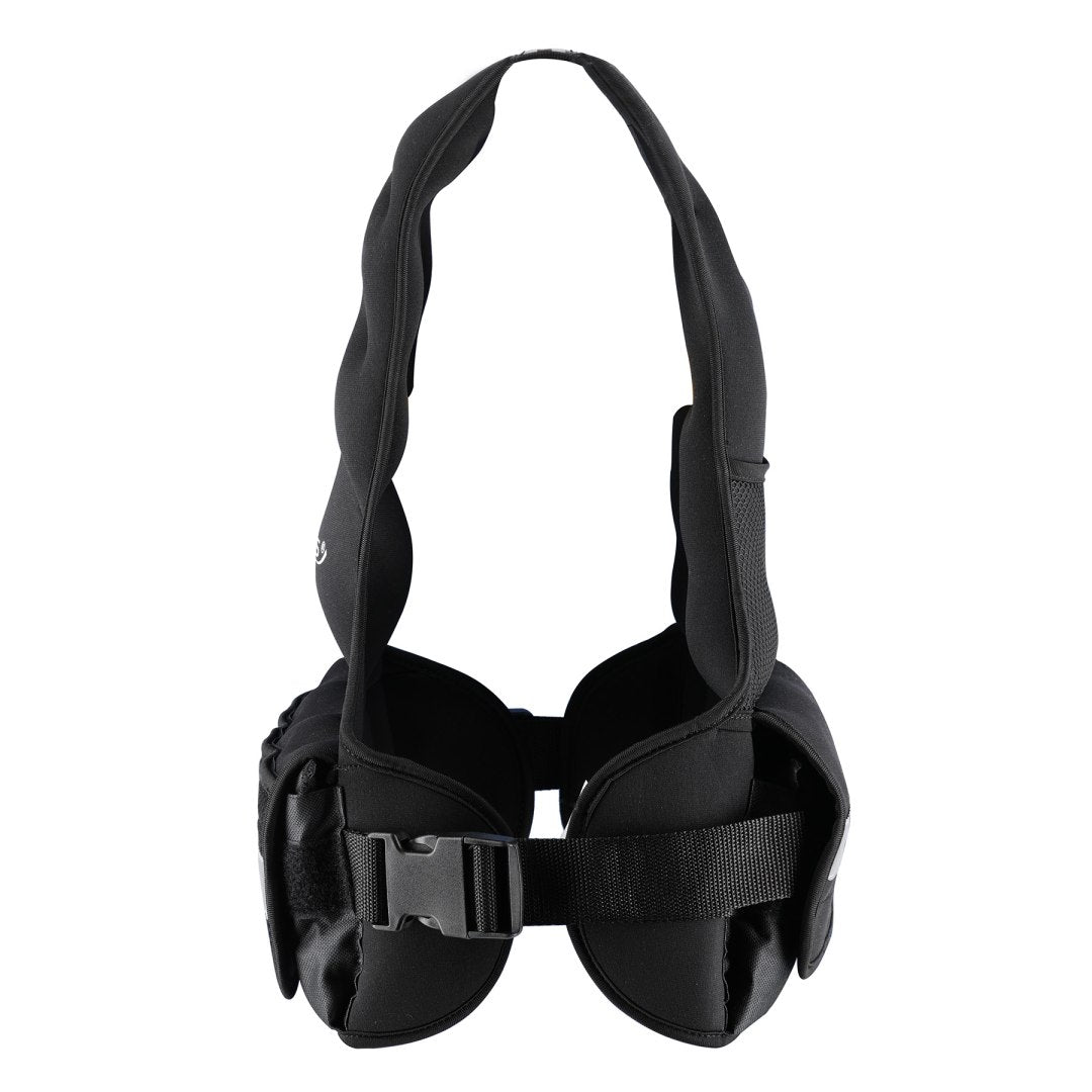 - Komfortas ir prigludimas: Minkštas neopreno audinys, reguliuojami dirželiai ir tolygus svorio pasiskirstymas užtikrina patogumą net ilgų treniruočių metu.