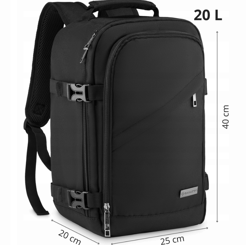 - Matmenys: 40 × 20 × 25 cm – patvirtintas rankiniam bagažui