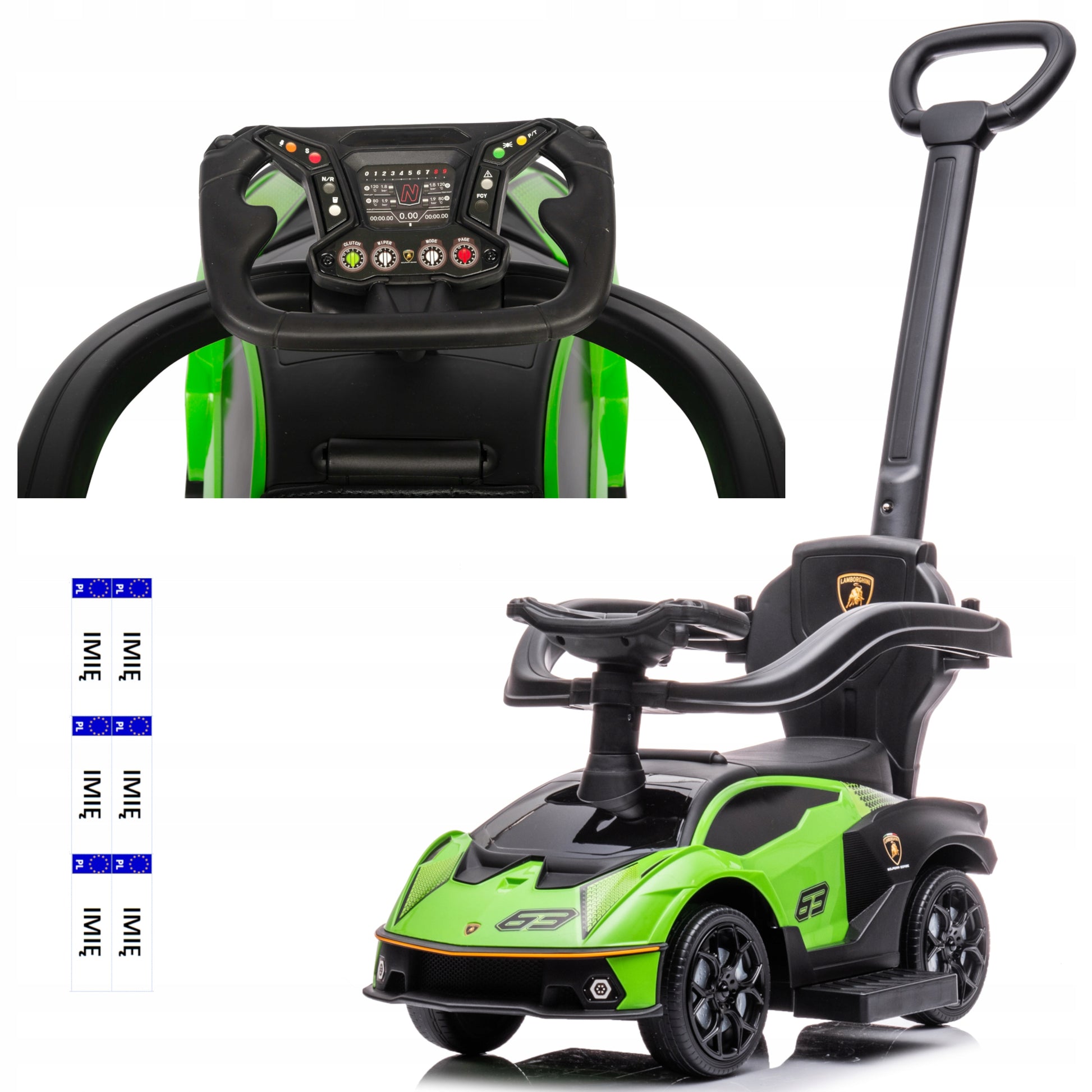 LAMBORGHINI 3in1 VAIKIŠKAS STUMIAMAS AUTOMOBILIS EKOLOGIŠKA ODA DOVANA METUKAMS