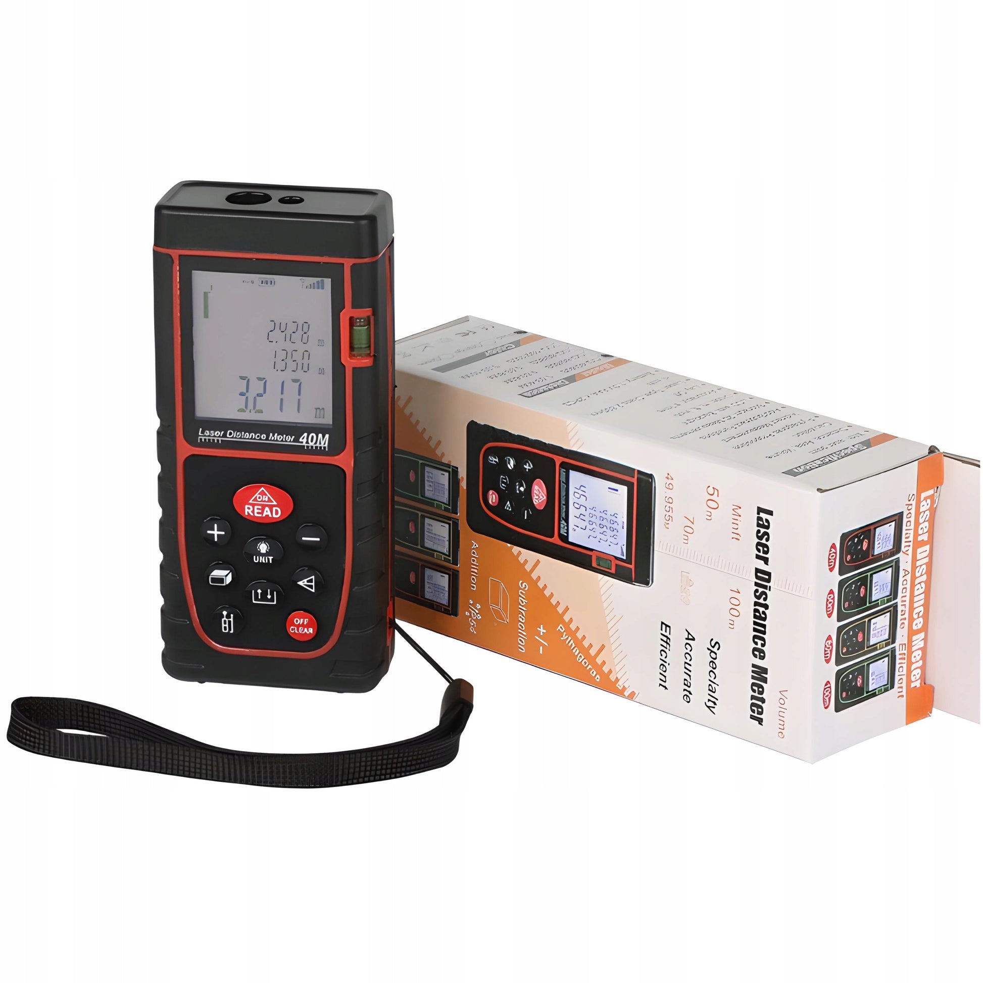 Lazerinis atstumo matuoklis skaitmeninis kampainis (inclinometras) matuoklis, gulsčiukas, atmintis 40m