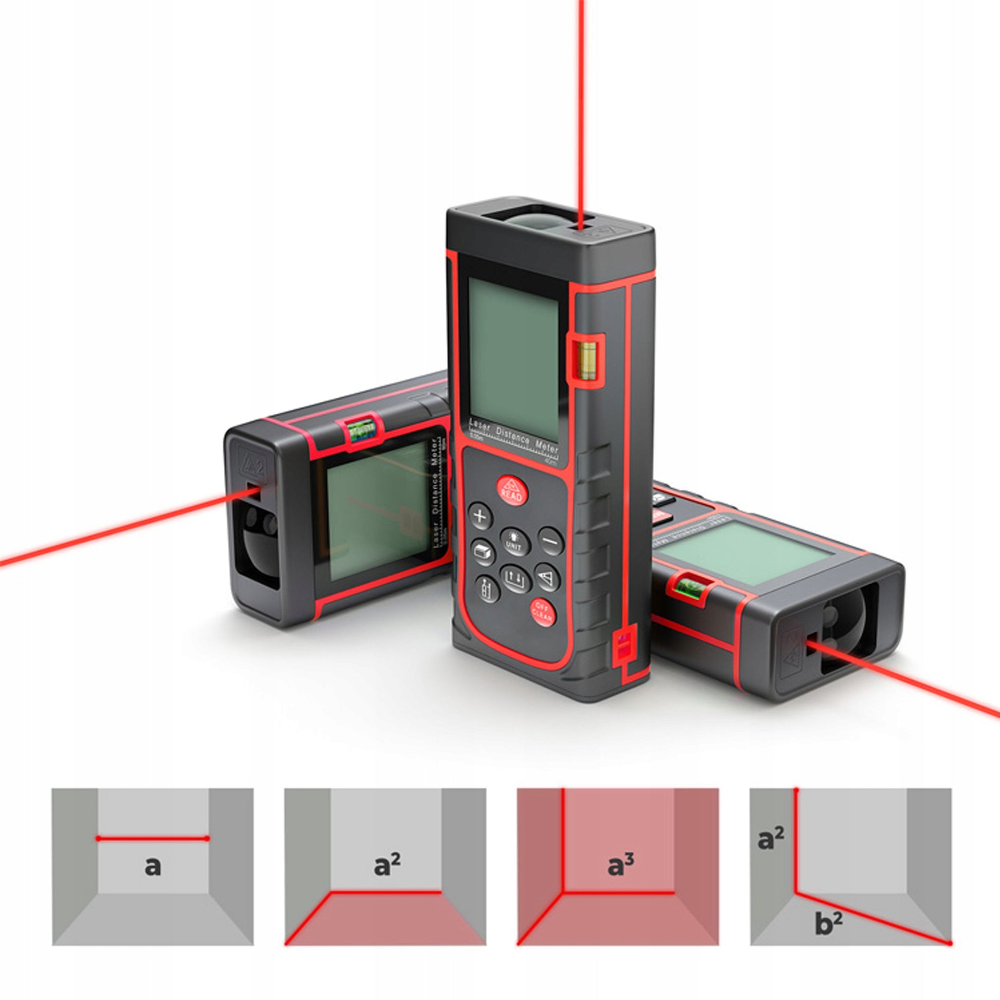 Mūsų lazerinis matuoklis siūlo daugybę pažangių funkcijų, palengvinančių jūsų darbą. Jis ne tik matuoja atstumus, bet ir leidžia greitai apskaičiuoti plotą ir tūrį, atlikti sudėtis bei atimtis tarp matavimų. Funkcija „Pitagoro teorema“ atveria galimybes netiesioginiams matavimams, pavyzdžiui, aukščio ar plotį, kai tiesioginis priėjimas yra sudėtingas. Automatinis lazerio ir prietaiso išsijungimas taupo energiją ir prailgina prietaiso tarnavimo laiką.