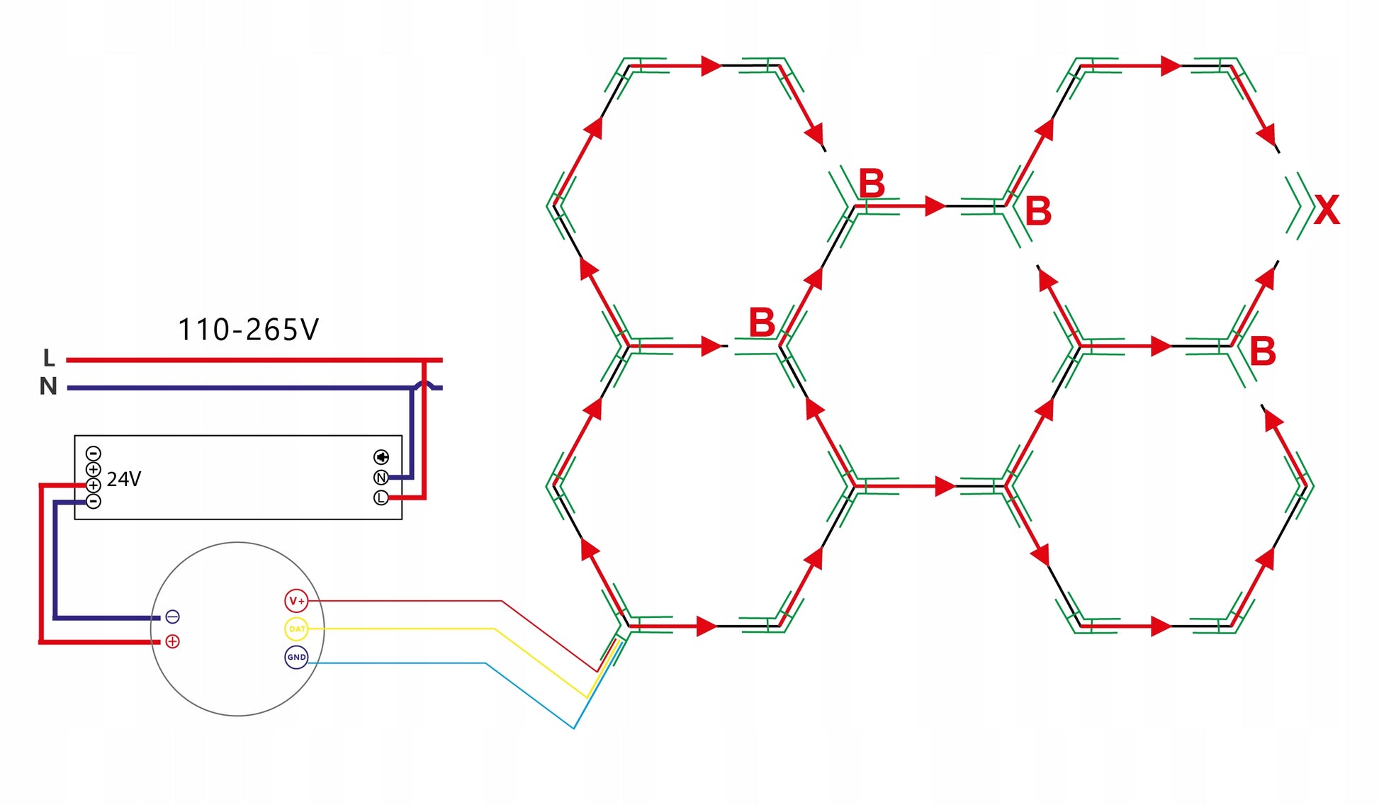 - 180W LED Hexagon RGB panelės moduliai (24 vnt. T5 LED, 440 mm)