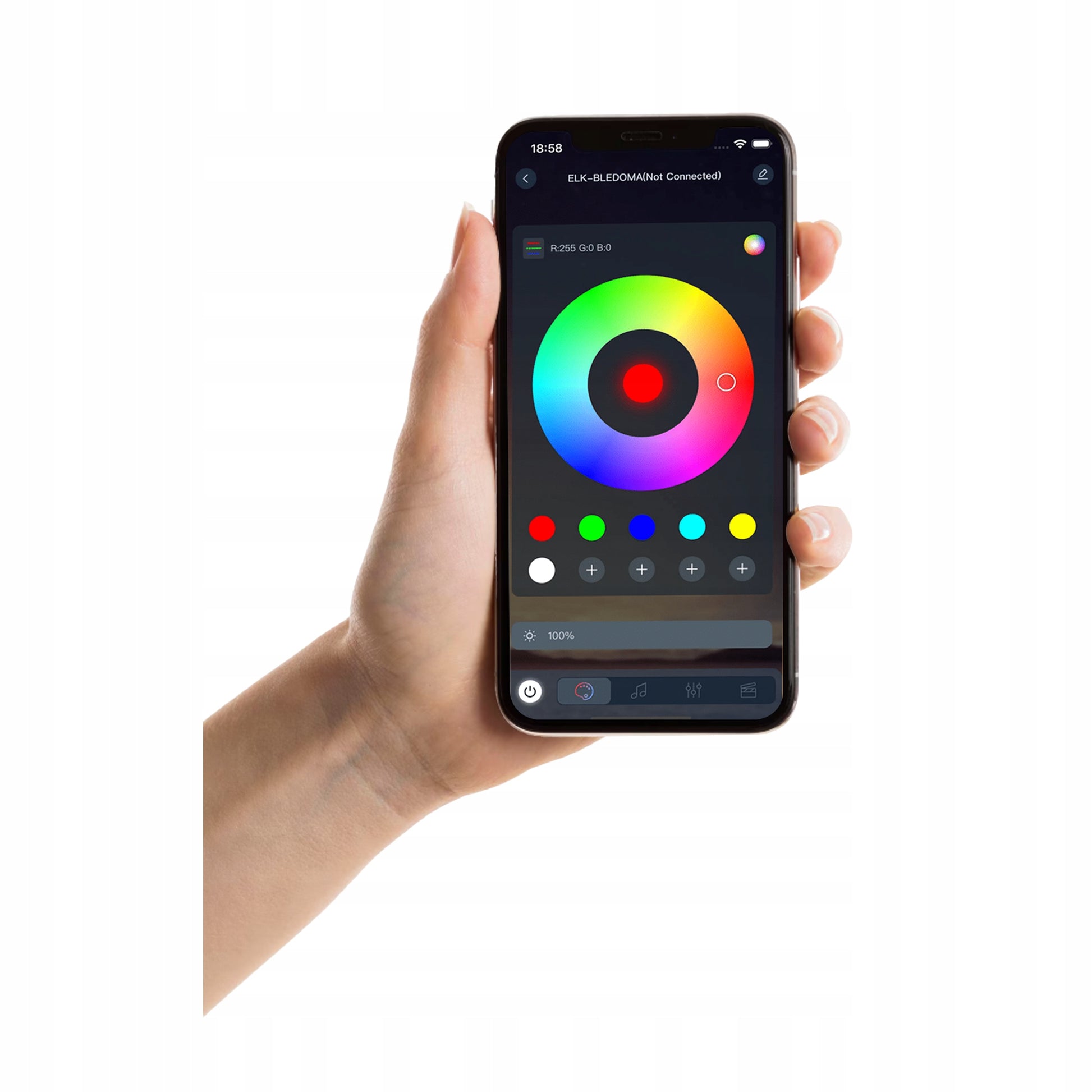 - Spalvos temperatūra (CCT): RGB su Music Sync ir "chasing" efektais