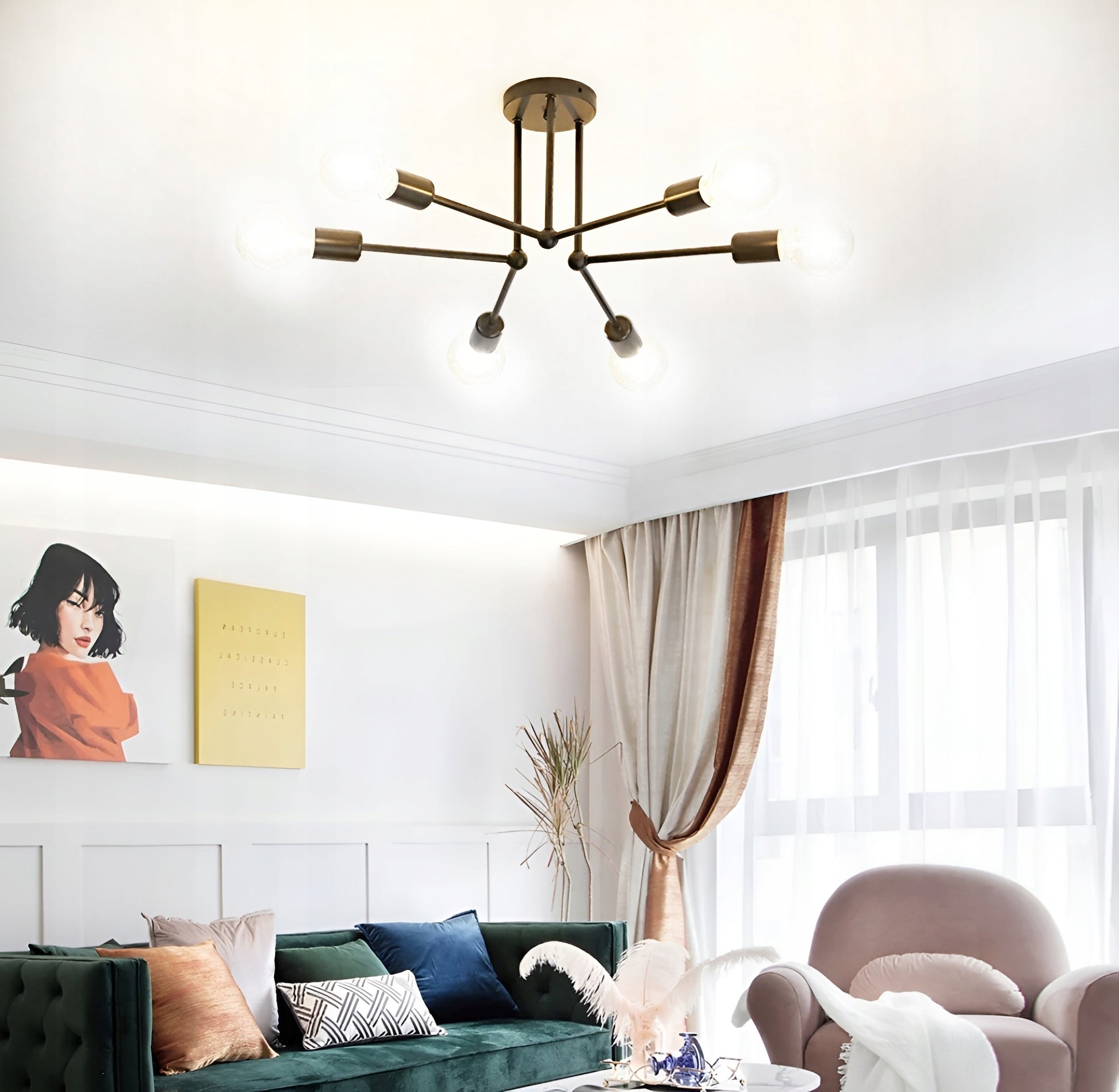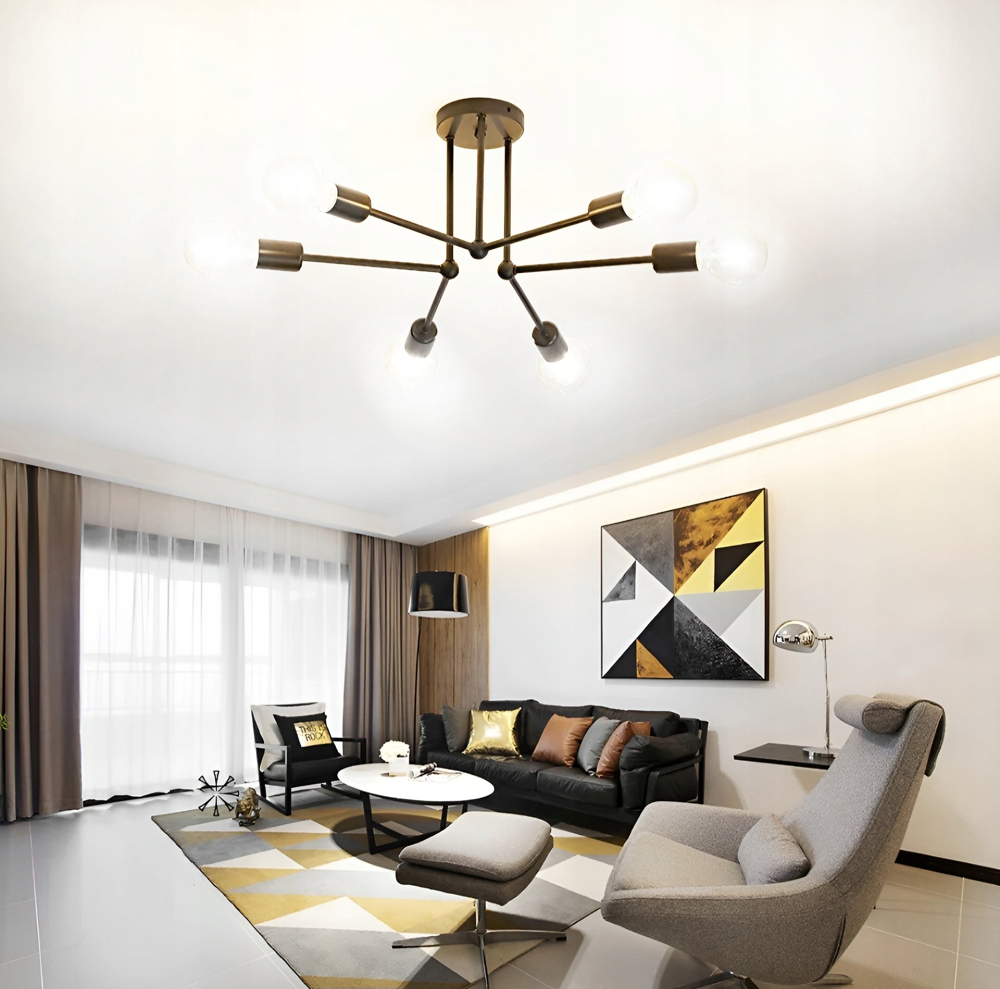 Ši juoda metalinė lubinė lempa puikiai atspindi populiaraus lofto ir industrinio stiliaus estetiką. Jos minimalistinė, tačiau solidi išvaizda dera su tokiomis medžiagomis kaip betonas, plytos ar natūrali mediena. Šeši atviri E27 lizdai leidžia eksperimentuoti su dekoratyvinėmis lemputėmis, kurios gali tapti papildomu interjero akcentu. Ši lempa yra universali – ji atrodys įspūdingai tiek svetainėje, tiek virtuvėje, tiek darbo kambaryje ar net erdviame koridoriuje, suteikdama patalpoms išbaigtumo ir stiliaus pojūtį.