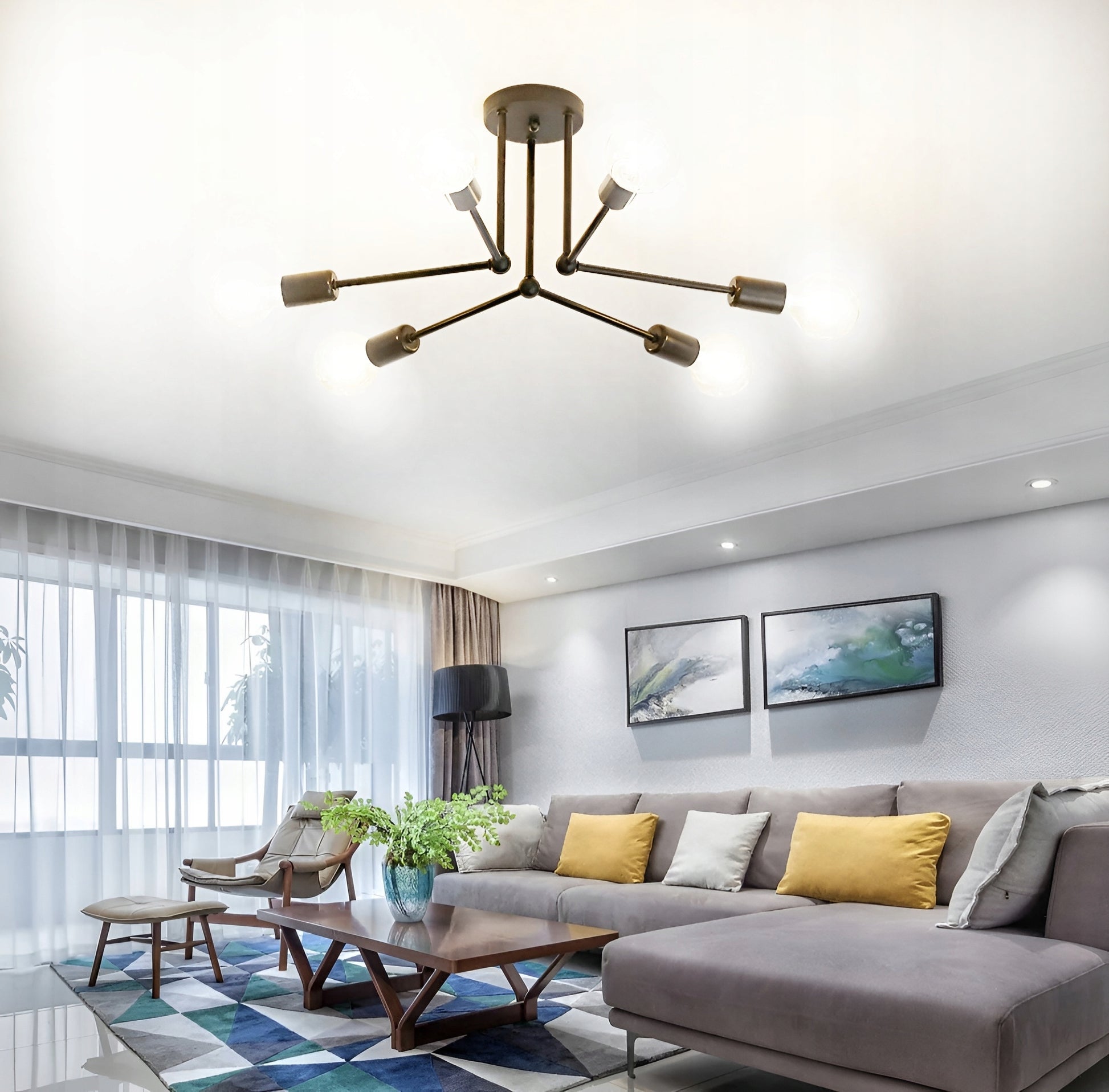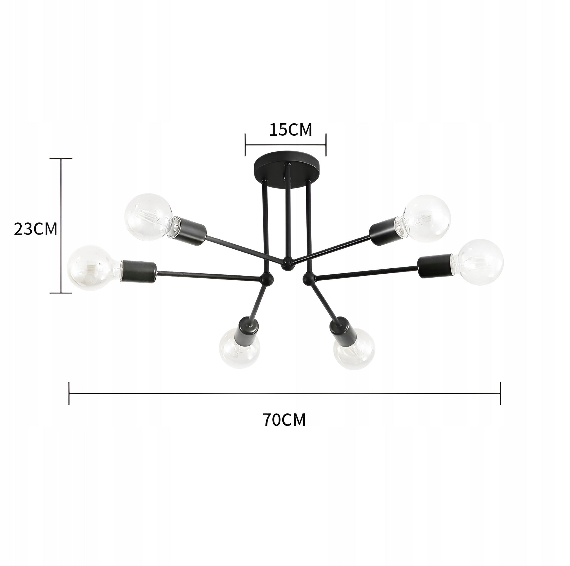 Kurdami savo klientams patogumą, siekiame, kad montavimo procesas būtų kuo paprastesnis. Ši lempa yra suprojektuota taip, kad ją būtų lengva ir greita sumontuoti ant lubų. Visi reikalingi tvirtinimo elementai, kurie užtikrina saugų ir patikimą sumontavimą, yra pridedami. Jums tereikės pasirinkti ir įsigyti šešias E27 standartinio sriegio lemputes, kurios atitiktų jūsų lūkesčius ir interjero dizainą. Lempai tinka bet kokio tipo E27 lemputės: LED, kaitrinės, halogeninės ar energinės taupymo lempos.