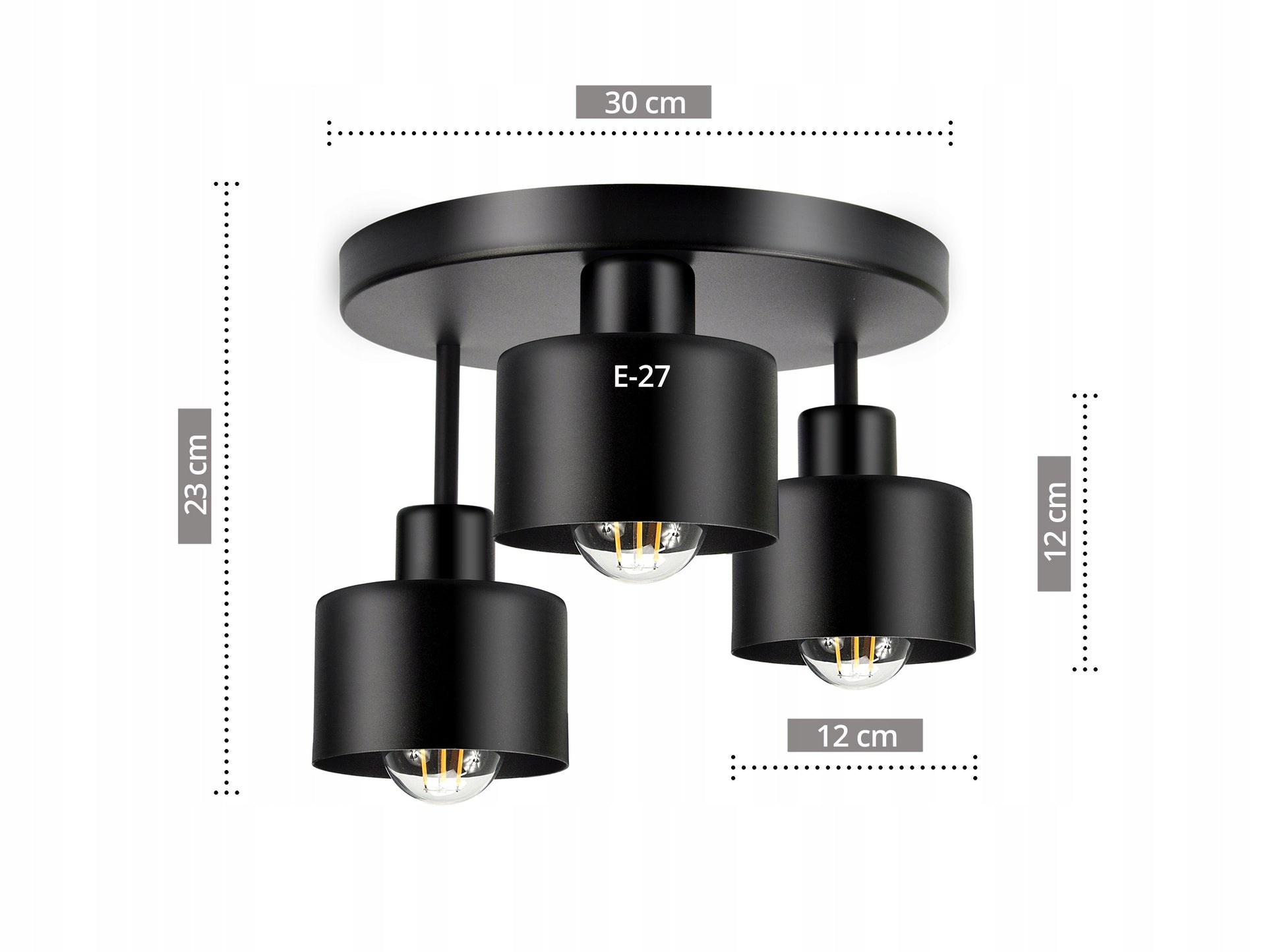 Lubinis šviestuvas Liustra Plafonas Metalinis LOFT LED 3xE27 juodas 382-E3 SPOT