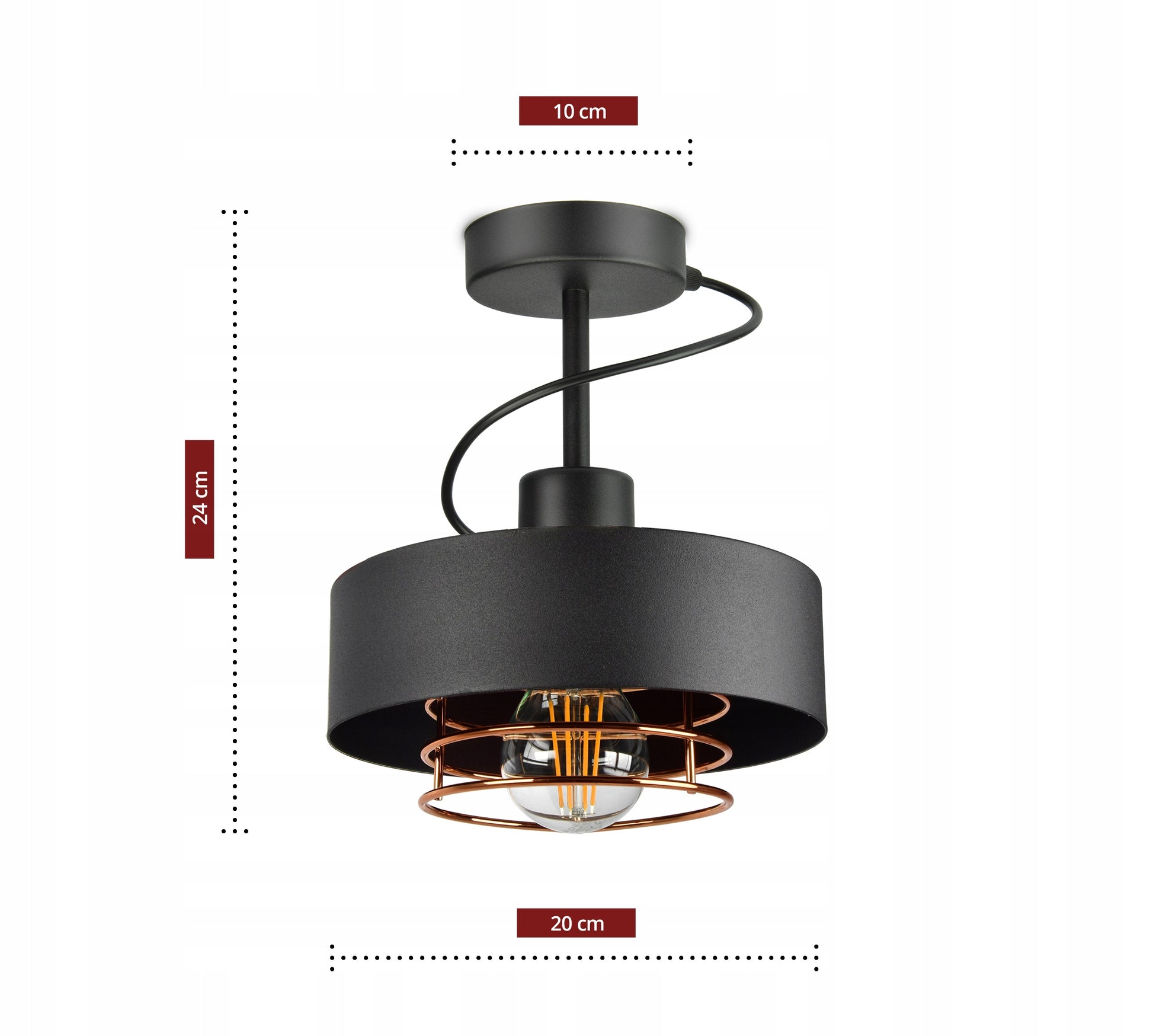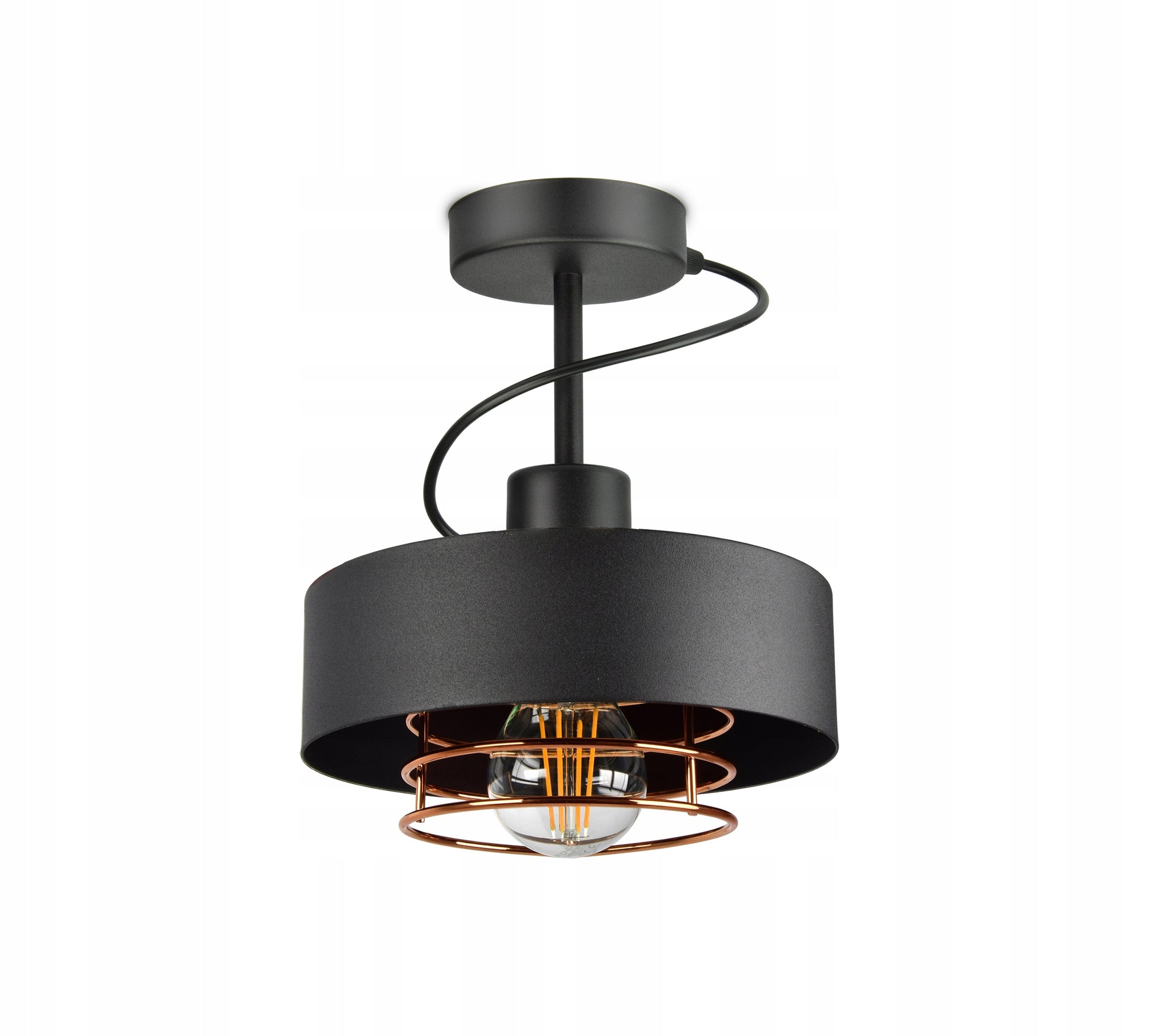 Šis lubinis šviestuvas yra puikus pasirinkimas tiems, kurie vertina industrinį, bet kartu rafinuotą stilių. Juodas matinis metalas, papildytas natūralaus vario spalvos detalėmis, sukuria išskirtinį vaizdą, kuris traukia akį ir suteikia patalpai solidumo. Idealiai tinka apšviesti svetainę, miegamąjį, virtuvę ar valgomojo zoną, suteikdamas jai reikiamą apšvietimą ir estetinį patrauklumą. Dėl savo kompaktiško dizaino ir galimybės naudoti E27 tipo lemputes (iki 60W), jis yra universalus sprendimas papildomam, dekoratyviam ar taškiniam apšvietimui – puikiai tinka pakabinti virš stalo, virtuvės salos ar tiesiog nedidelėms patalpoms apšviesti.