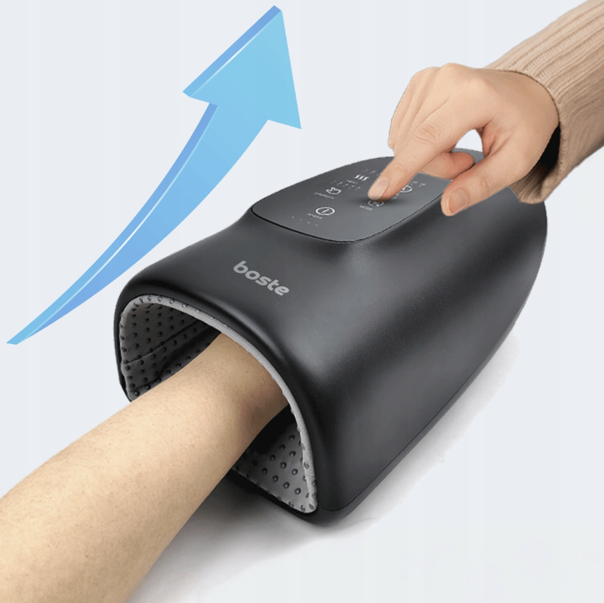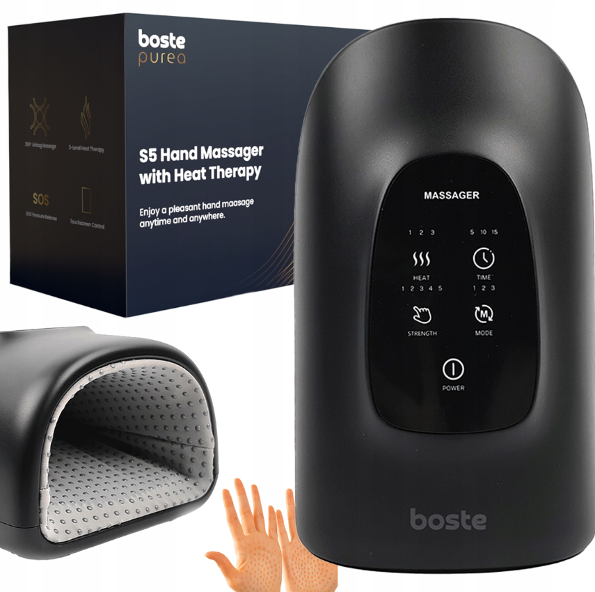 Jeigu po darbo prie kompiuterio, ilgų valandų rašymo ar kitų veiklų rankos tampa pavargusios, o riešai įsitempę – „Boste S5” suteikia raminančią pagalbą. Šis masažuoklis apgaubia ranką oro pagalvėmis, suteikia šildymo efektą ir leidžia pritaikyti masažą pagal savo poreikius. Tobulas pasirinkimas namuose, biure ar kelionėje – kai ieškai komforto, atsipalaidavimo ir galimybės atsigauti be profesionalaus masažuotojo.