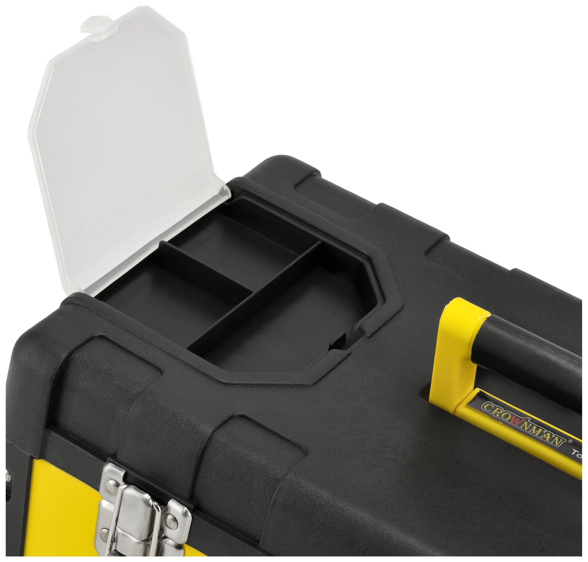 Ši įrankių dėžė išsiskiria tvirta, tačiau lengva metalo ir plastiko konstrukcija, užtikrinančia ilgalaikį naudojimą. Ji sukurta atlaikyti kasdienio naudojimo iššūkius, ar tai būtų darbas statybvietėje, dirbtuvėse ar garaže. Specialiai integruota galimybė užrakinti dėžę su pakabinama spyna suteikia papildomą saugumą jūsų vertingiems įrankiams. Sulankstoma konstrukcija ir sklandžiai veikiantys vyriai leidžia lengvai atidaryti ir uždaryti dėžę, greitai pasiekiant reikiamus įrankius.