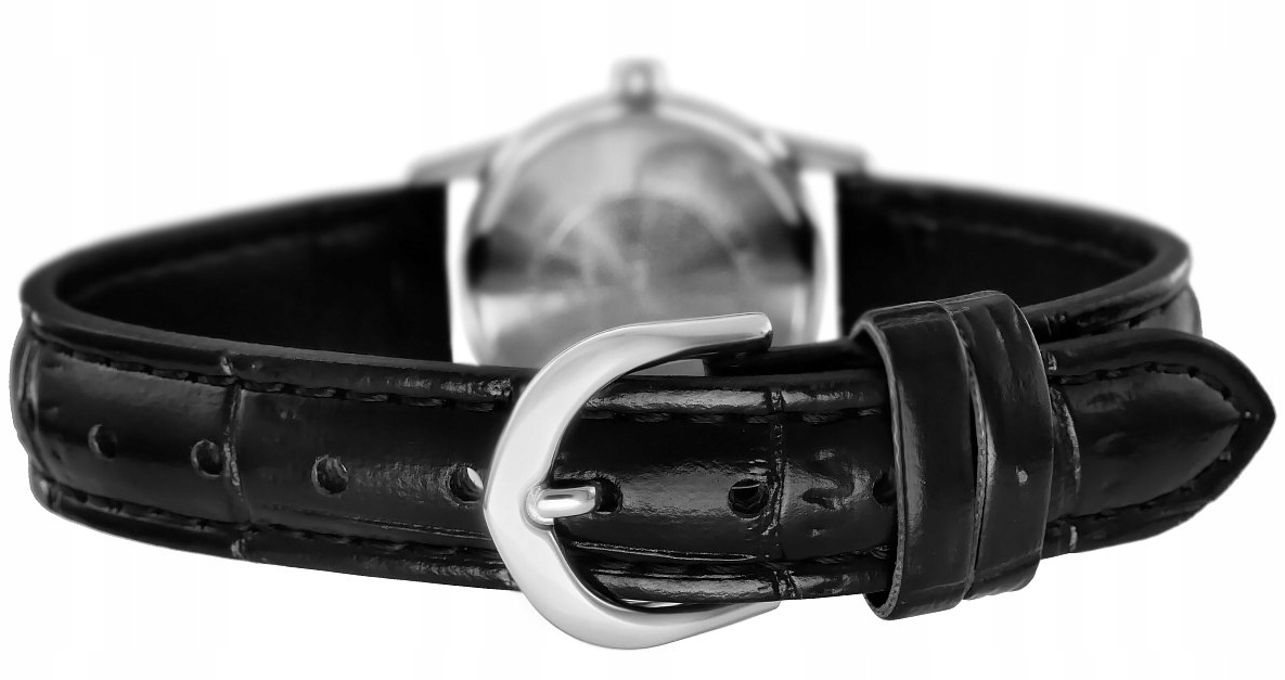 Šis analoginis laikrodis išsiskiria tvarkinga, subtilia estetika – sidabrinis korpusas, klasikinis baltas ciferblatas ir juodas odinis dirželis sukuria rafinuotą įspūdį. Kvarcinis mechanizmas užtikrina tikslumą, mineralinis stiklas apsaugo nuo smulkių įbrėžimų, o atsparumas vandeniui (Water Resistant) leidžia nebijoti drėgmės. Šį laikrodį ypač patogu nešioti dėl mažo ir plono korpuso – tai puiki dovana moterims.