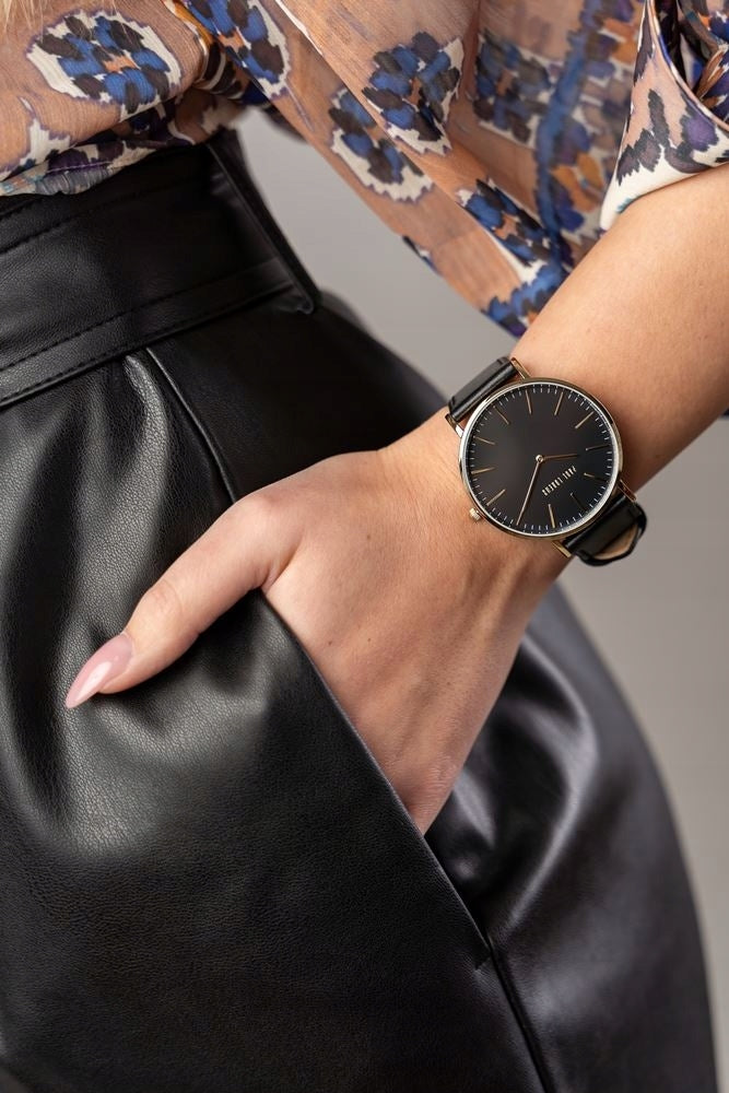 Paul Lorens PL11014A7-1A2 yra aprūpintas patikimu kvarciniu mechanizmu, kuris užtikrina itin tikslų laikrodžio veikimą ir nereikalauja dažno derinimo. Analoginis ciferblatas su aukso spalvos indeksais ir rodyklėmis yra lengvai skaitomas, o jo juoda spalva sukuria klasikų ir modernumo derinį. Laikrodis atsparus vandeniui iki 3 BAR slėgio, todėl apsaugo nuo kasdienių sąlygų, tokių kaip lietus ar rankų plovimas. Dėl antialerginės sudėties, nepraturtintos nikeliu, šis laikrodis yra puikus pasirinkimas net ir jautriausią odą turinčioms moterims. Kiekvienas laikrodis turi gamintojo išgraviruotus originalumo ženklus ant dugnelio.