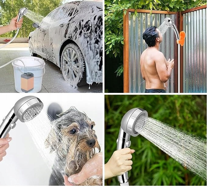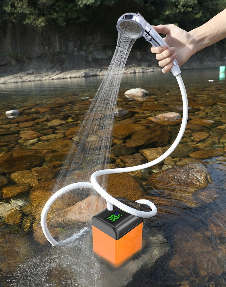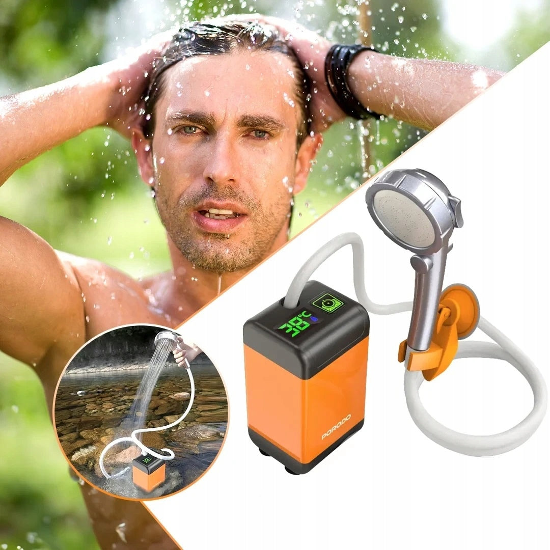Šis kompaktiškas ir lengvas prietaisas pasi žymi iškirtinėmis funkcijomis, kurios užtikrina maksimal ų patogum ą: 4800 mAh akumuliatorius leis m ėgautis iki 60 minu čių nenutr ūkstamo vandens srauto vienu įkrovimu, o USB jungtis leis lengvai papildyti energij ą iš gal imos powerbanko. LED ekranas rodys vanden s tempera tūrą realiu laiku, garantuodamas saugum ą ir komfort ą kiekvieno prausimosi metu. Tvirtas varinis variklis užtikrina ilg ą prietaiso tarnavimo laik ą ir stabil ų, tyl ų veikim ą. Stipri pompa sukuria pastov ų ir malon ų vandens sraut ą, o pridedamas laikiklis su siurbtuku leis patogiai pritvirtinti du šo galvut ę bet kur – palapinėje, automobilyje, ant sienos ar net plyteli ų. Jo kompaktiški matmenys leidžia lengvai sutalpinti j į kuprinėje, paplūdimio ta šėje ar kemperio daiktadėžėje.