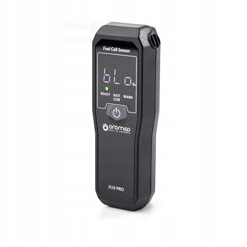 OROMED X10 PRO išsiskiria pažangia technologija ir vartotojo patogumu. Jo širdis – aukštos klasės platinos elektrocheminis sensoriumi, užtikrinantis stabilumą ir didelį tikslumą visame matavimų diapazone. Prietaisas turi oro srauto jutiklį, kuris garantuoja teisingą bandinio paėmimą, ir sistemą, apsaugančią matavimo kamerą nuo pažeidimų, taip prailginant jos tarnavimo laiką. Integruotas temperatūros kontrolės modulis leidžia atlikti matavimus tik tinkamomis sąlygomis, taip sumažinant galimas klaidas. Alkomato valdyti yra itin paprasta – tereikia vieno mygtuko. Be to, prietaisas primena apie būtinybę atlikti kalibraciją, taip nuolat palaikant jo matavimo tikslumą.