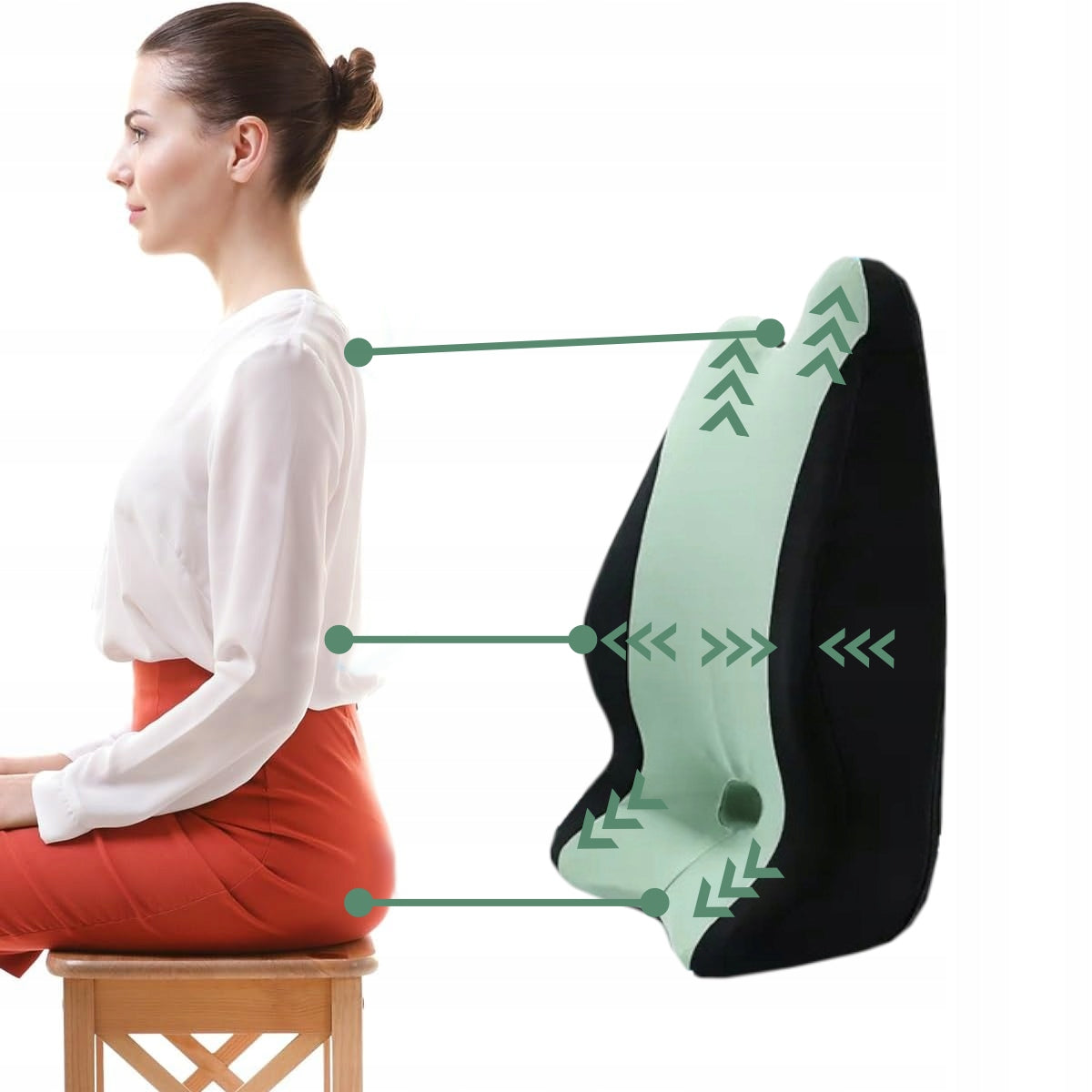 - Sveika laikysena: Pagalvėlė padeda išlaikyti taisyklingą stuburo padėtį, mažina apkrovą ir prevenciškai veikia prieš nugaros skausmus.