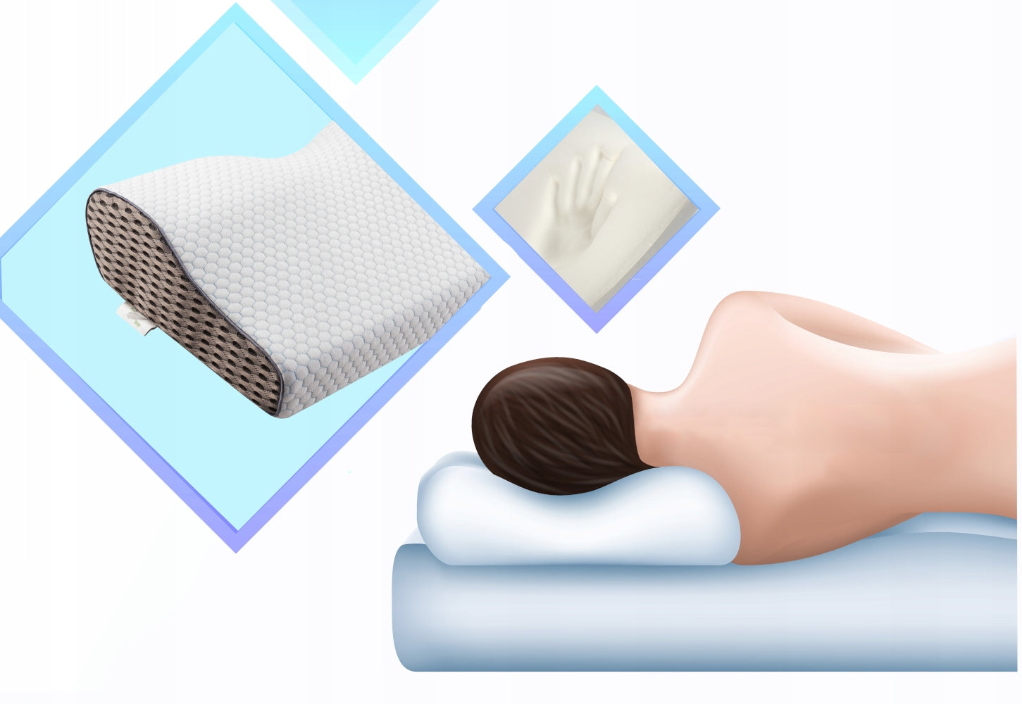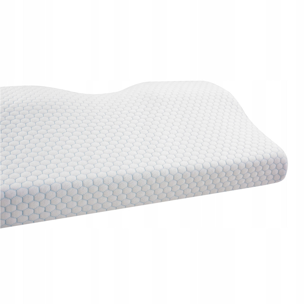 Ortopedinė pagalvė šoniniam ir pilvo miegui, profiliuota iš memory putų.