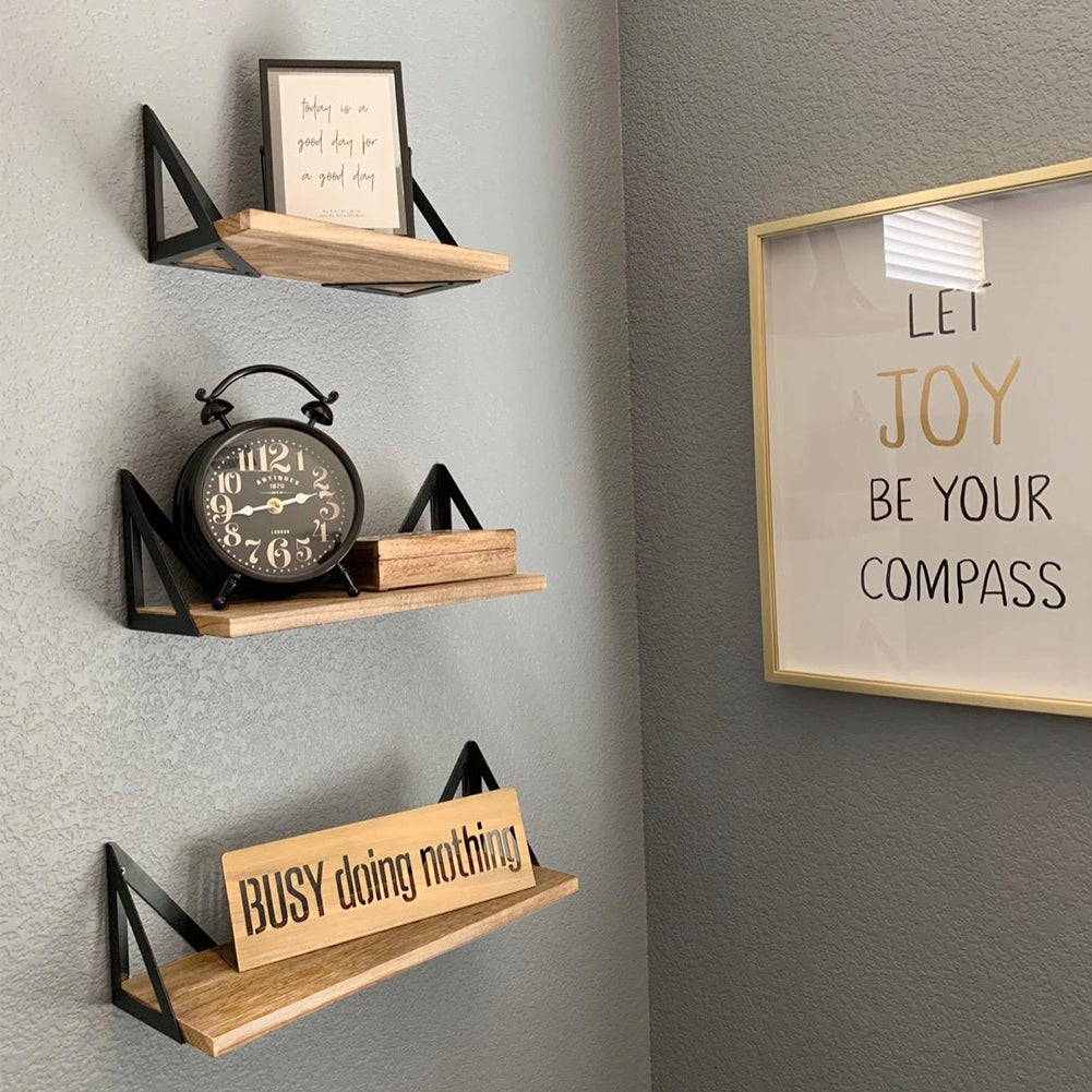 Atnaujinkite savo interjerą su šiuo 3 vienetų pakabinamų sieninių lentynų komplektu, sukurtu derinant rustikalinį ir industrinį stilius. Šios metalinės lentynos, pagamintos iš tvirto pušies medžio ir juodo metalo, suteiks jūsų erdvei unikalumo ir elegancijos. Jų universalus dizainas leidžia kurti įvairius dekoratyvinius išdėstymus, puikiai papildant bet kokią sieną – nuo svetainės iki miegamojo ar darbo kambario. Tai puikus sprendimas tiems, kurie vertina funkcionalumą ir išskirtinį dizainą.