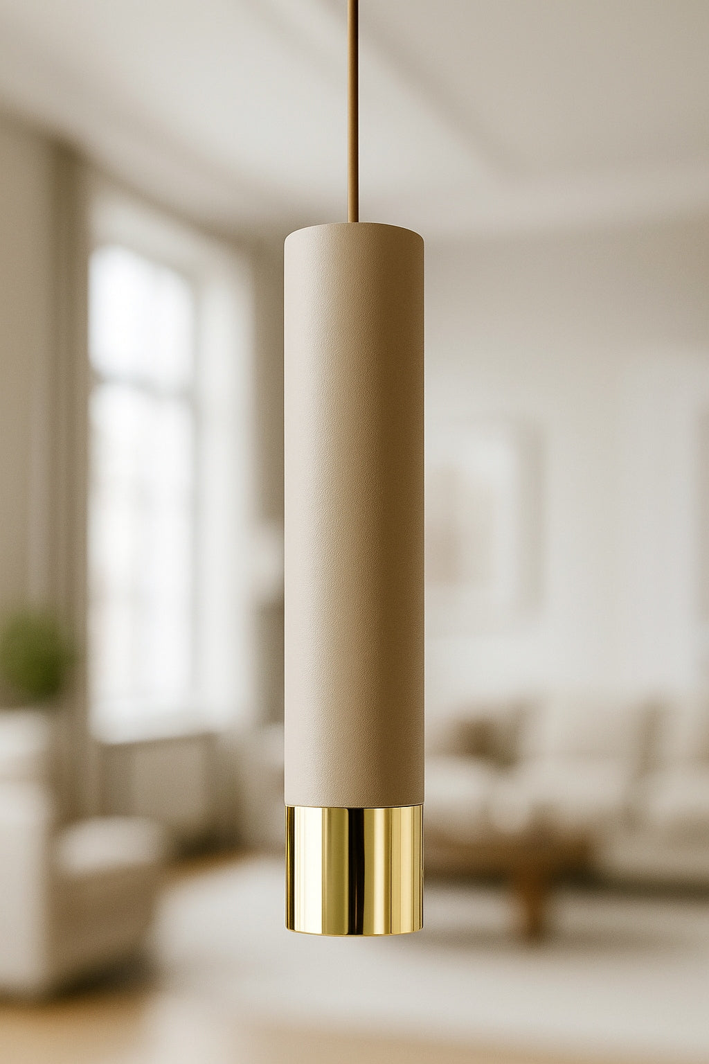 Atraskite modernumo ir jaukumo harmoniją su "Kaszmir" pakabinama lubine lempa. Ši išskirtinė, vamzdžių formos lempa, elegantiškai "Ecru" (kashmyro smėlio) spalvos, puikiai papildys jūsų virtuvę, svetainę, valgomąjį ar net biurą. Jos minimalistinis dizainas, subtiliai derantis su aukso detalėmis, sukuria rafinuotą ir šiuolaikišką atmosferą, kuri tiks tiek minimalistiniuose, tiek skandinaviško ar boho stiliaus interjeruose. "Kaszmir" lempa yra ne tik šviesos šaltinis, bet ir svarbus interjero dizaino elementas, suteikiantis patalpai išskirtinumo ir šilumos. Jos universali spalva (RAL 1019 pilkšvai smėlio) leidžia lengvai derinti su įvairia apdaila ir baldais, sukuriant darnią ir stilingą erdvę.