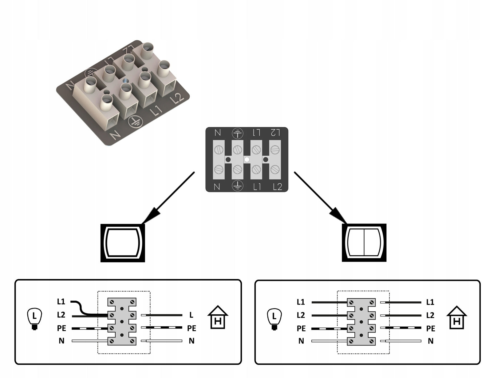 - Elektros jungtis, skirta 2 grandinių instaliacijai.