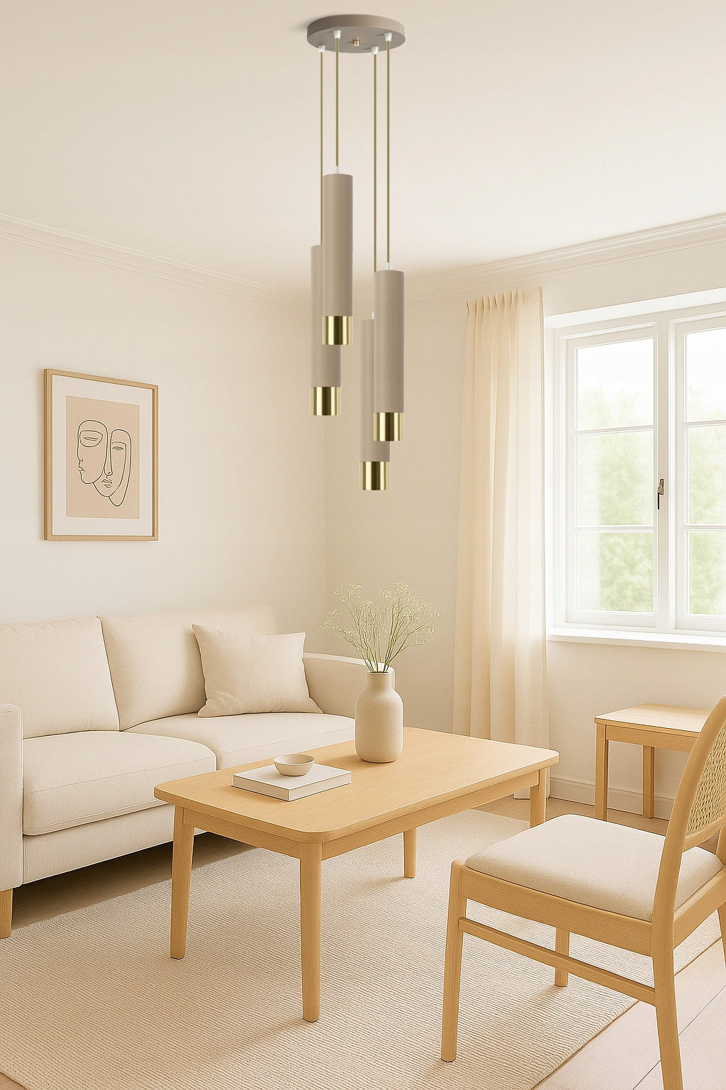 Atraskite rafinuotą stilių ir funkcionalumą su mūsų kabinama lubine lempa "Kaszmir". Ši unikali, vamzdžių formos lempa, subtilios "Kaszmir" (kashmyro) spalvos, derina modernų dizainą su jaukumu, todėl puikiai tiks bet kuriai jūsų namų erdvei. Jos elegantiškas, pilkšvai smėlinis (RAL 1019) atspalvis, papildytas subtiliais aukso detalėmis, sukuria išskirtinį akcentą, lengvai įsiliejantį į šiuolaikinius, minimalistinius, skandinaviškus ar net boho interjerus. "Kaszmir" lempa ne tik apšvies, bet ir pagyvins jūsų virtuvę, svetainę, valgomąjį ar miegamąjį, suteikdama erdvei prabangos ir harmonijos.