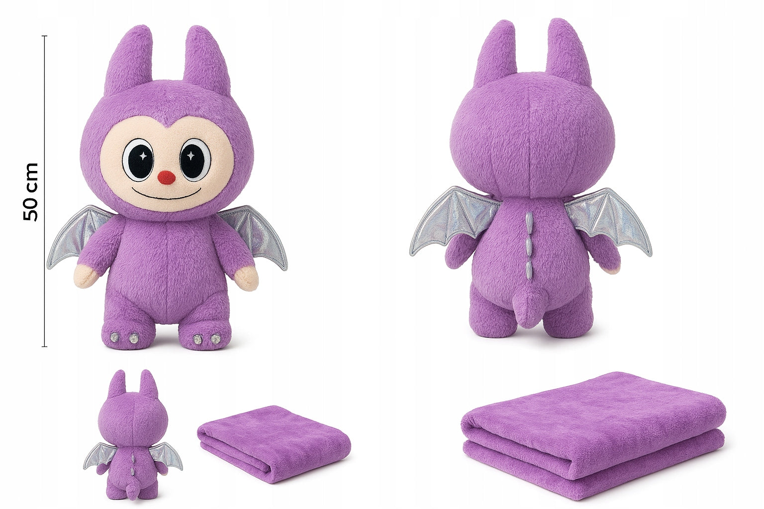 Unikalus Pliušinis Žaislas LABUBU – Didelis 50 cm su Sparneliais ir Šiltu Pledu