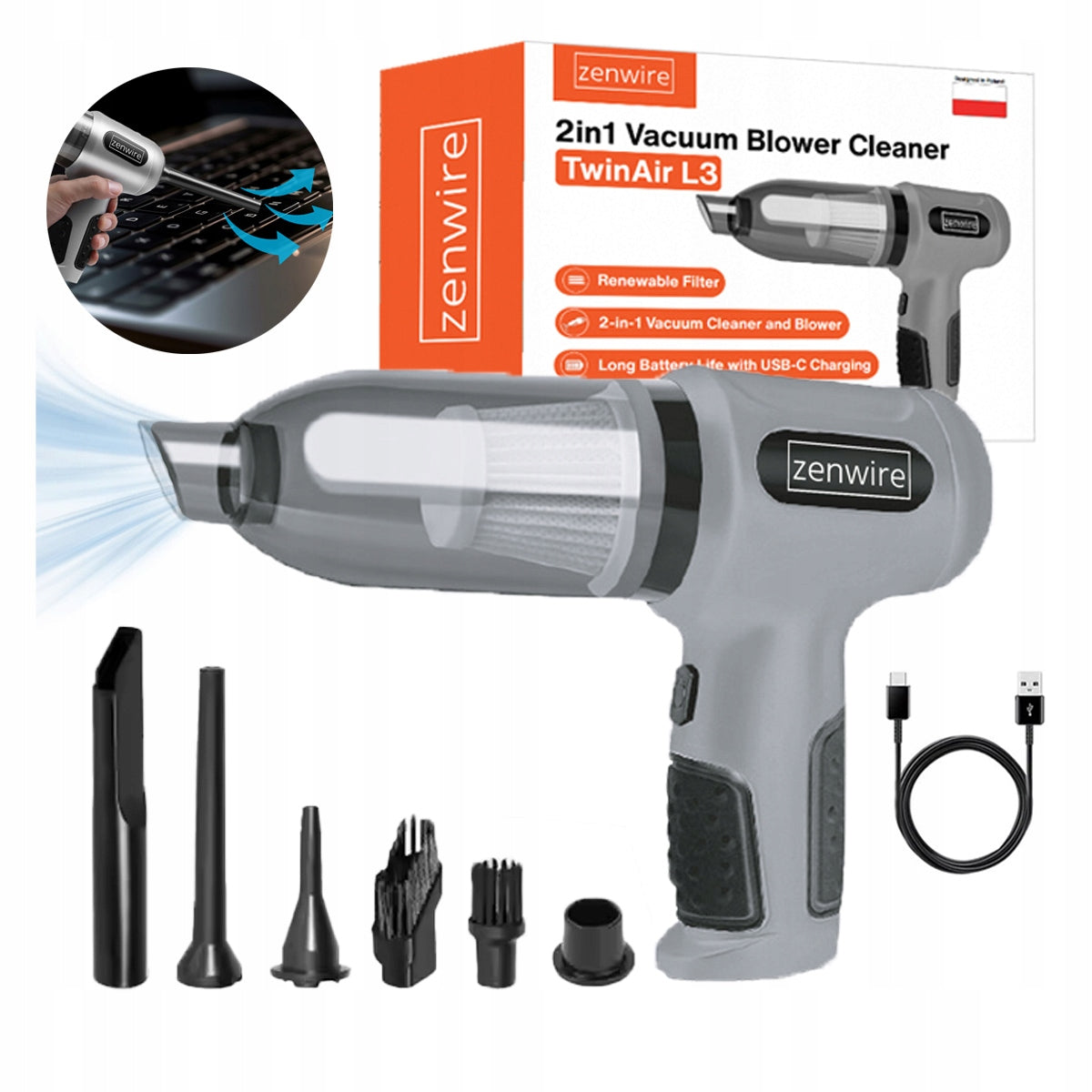 Zenwire TwinAir L3 yra sukurtas universaliems valymo poreikiams. Jo 2in1 funkcionalumas leidžia greitai pereiti nuo siurbimo režimo prie pūtimo. Tai reiškia, kad galite ne tik surinkti dulkes, trupinius ar gyvūnų plaukus iš automobilio salonos, namų kampų ar klaviatūros, bet ir efektyviai išpūsti nešvarumus iš ventiliacijos angų, kompiuterių aušintuvų ar sunkiai pasiekiamų tarpų. Tai nepaprastai patogu, kai reikia greitai atnaujinti aplinką ar atlikti smulkius valymo darbus be didelio technikos vargo.