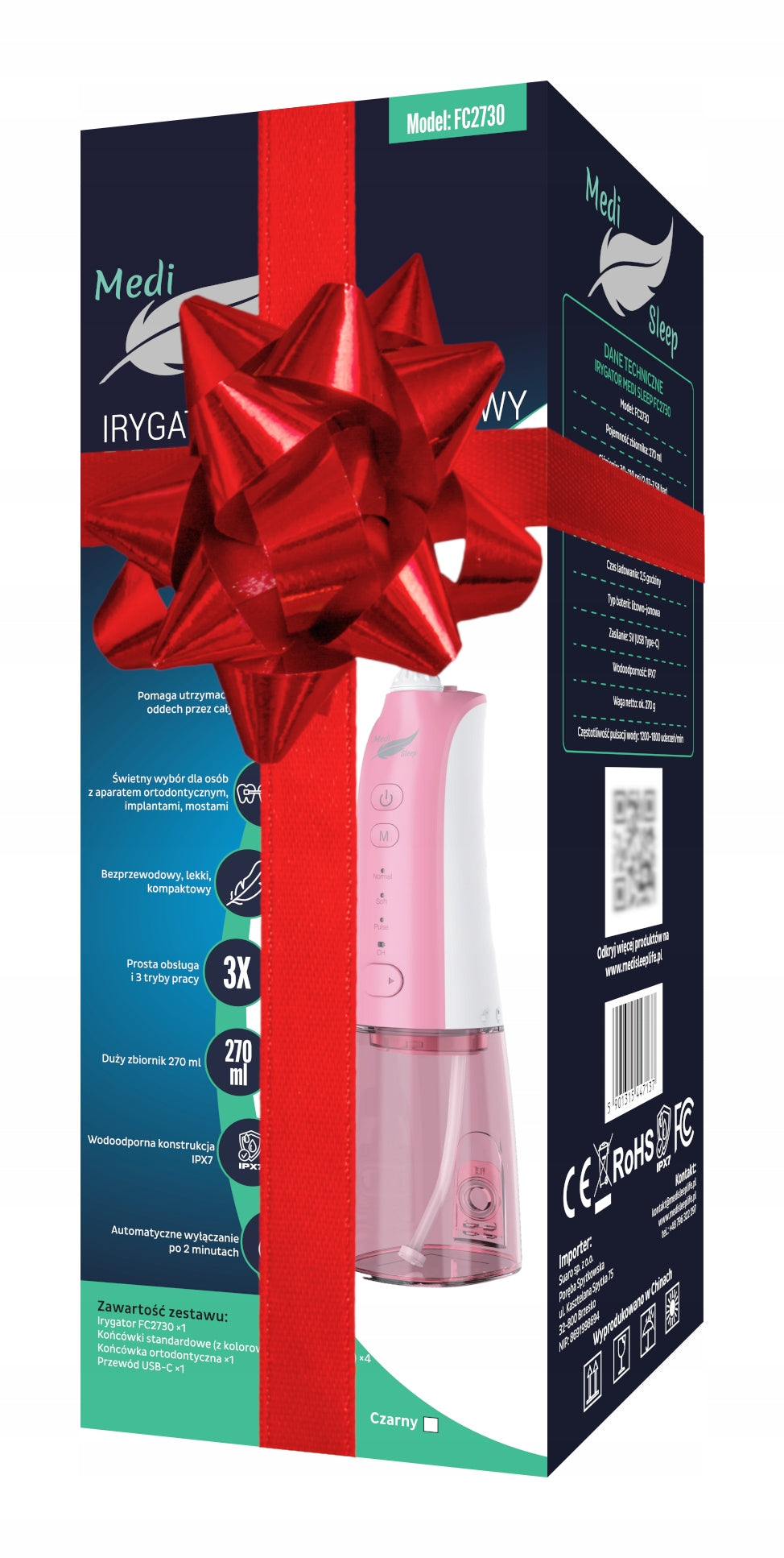 Pasirūpinkite savo šypsena su novatorišku Medi Sleep FC2730 belaidžiu irigatoriumi. Šis rožinis, pulsacinis dantų irigatorius – tai modernus sprendimas norintiems pasiekti nepriekaištingą burnos švarą ir sveikus dantis bei dantenas. Sukurtas kasdieniam naudojimui, jis lengvai integruojamas į jūsų higienos rutiną, užtikrinant gilų valymą ten, kur įprastas šepetėlis negali pasiekti. Su keturiais darbo režimais ir penkiomis keičiamomis šepetėlių galvutėmis, šis prietaisas idealiai tinka visai šeimai, padedant spręsti įvairias burnos priežiūros problemas – nuo maisto likučių tarpdančiuose iki jautrių dantenų ir ortodontinių aparatų priežiūros.