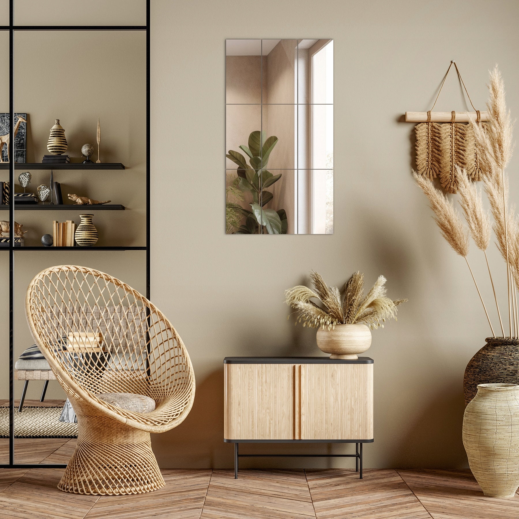Veidrodžiai interjere atlieka ne tik praktinę, bet ir svarbią dekoratyvinę funkciją. Mūsų savaime lipnios veidrodinės plytelės suteikia neribotas dizaino galimybes. Jos gali būti išdėstytos įvairiais raštais – nuo klasikinių simetriškų kompozicijų iki modernių, abstrakčių formų. Veidrodinės plytelės yra ideali priemonė optiškai didinti mažas patalpas, pavyzdžiui, koridorius ar nedideles svetaines. Jas tinkamai pakabinus, galima sukurti įspūdį, kad patalpa yra dvigubai didesnė ir daug šviesesnė. Be to, jos puikiai atspindi šviesą, taip padėdamos efektyviau išnaudoti natūralią ar dirbtinę šviesą, sumažinti energijos sąnaudas apšvietimui ir sukurti jaukesnę atmosferą. Šios plytelės yra universali dekoracija, tinkanti bet kokiam interjero stiliui, nuo minimalistinio iki Art Deco.