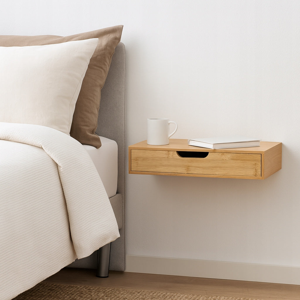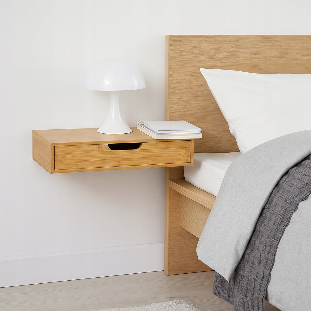 Sieninė lentyna Naktinė spintelė su stalčiumi Bambukinė 40x24x8 cm