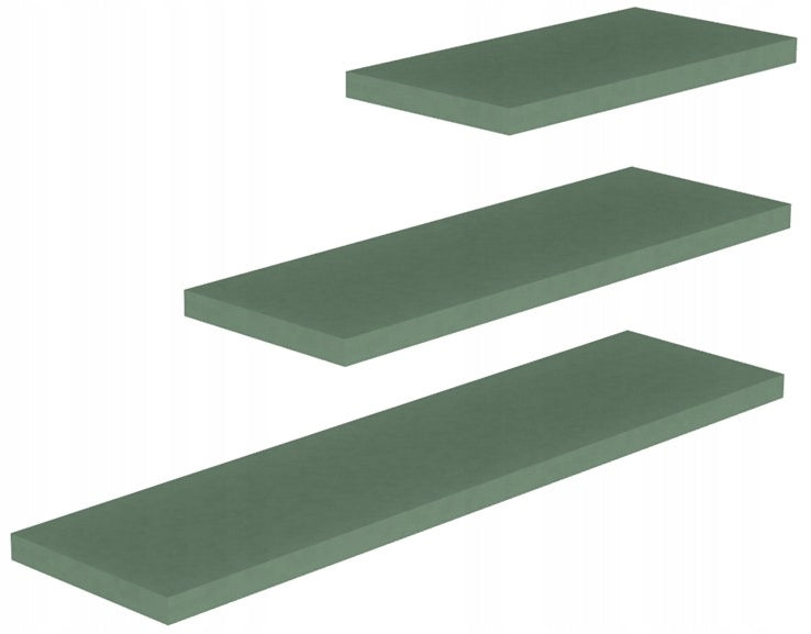 Sieninių baldų lentynų komplektas, 3 vnt., pakabinamos, dūminė žalia