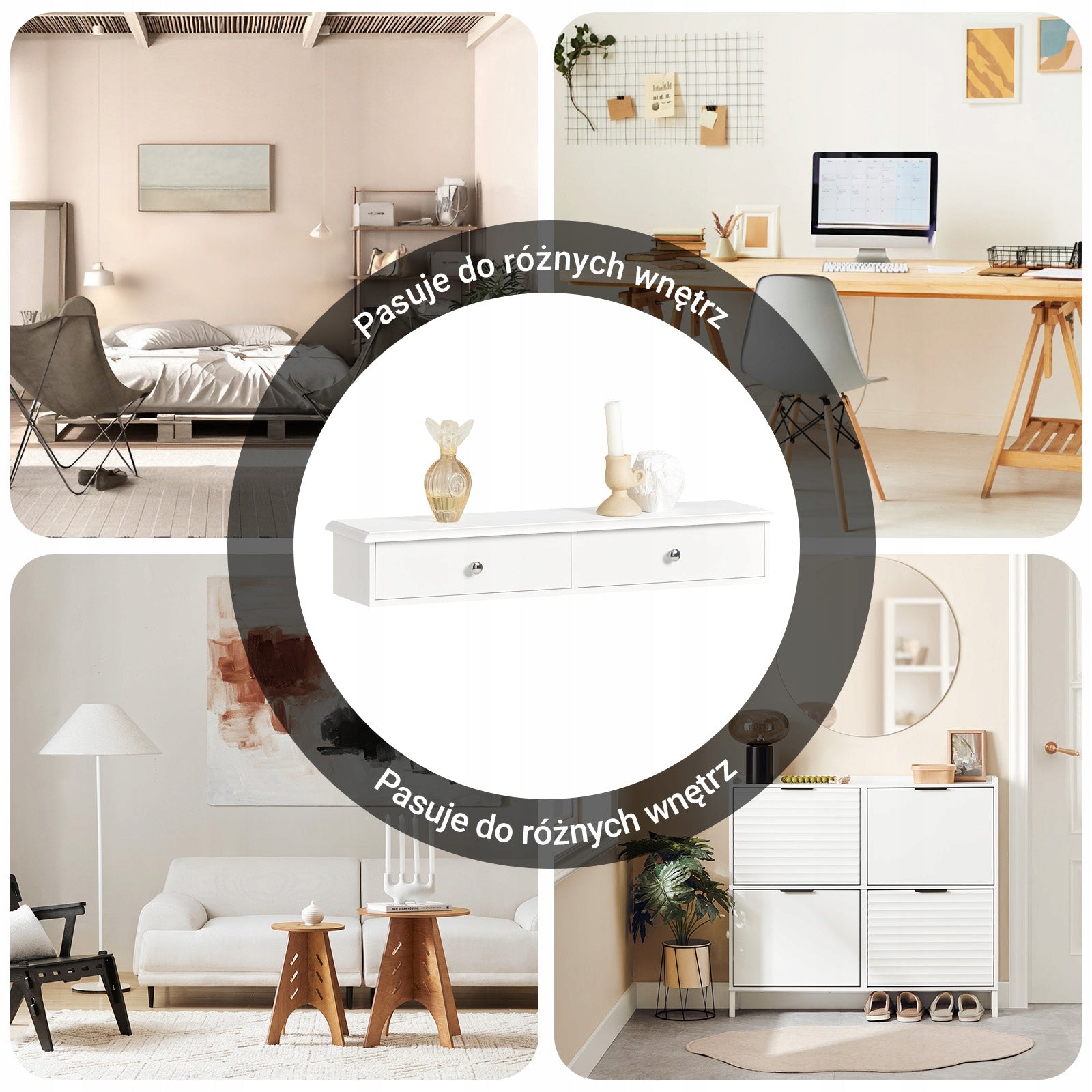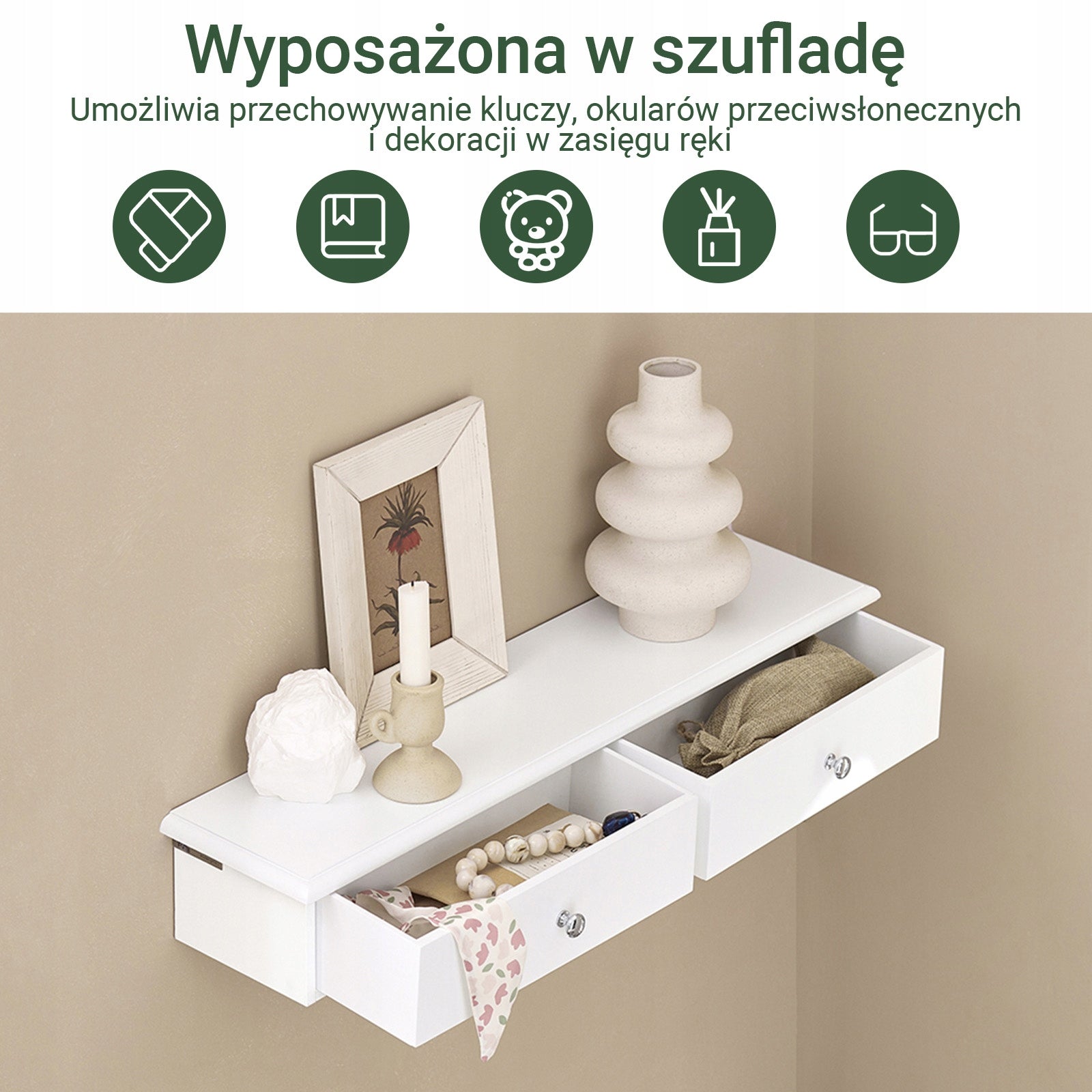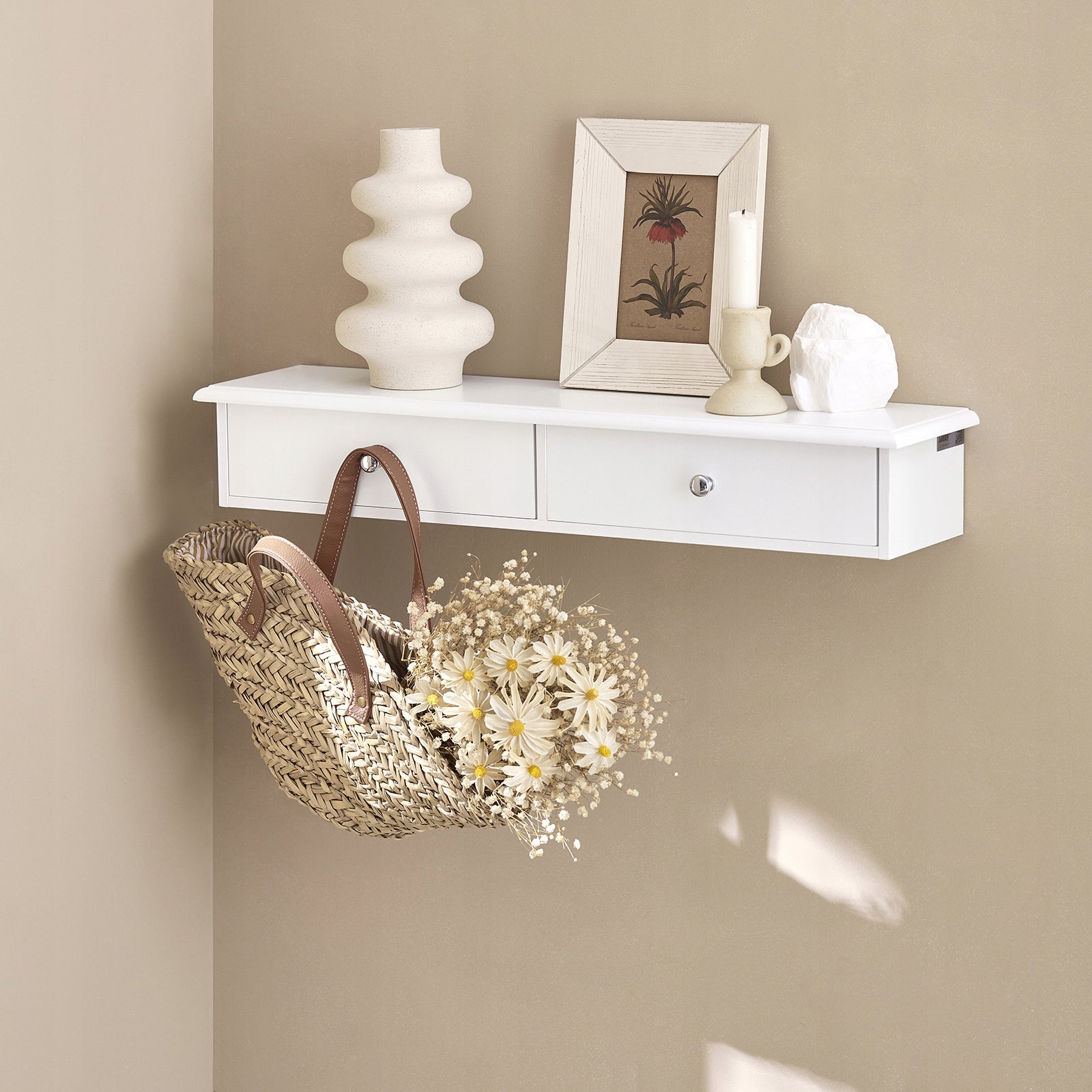 Atnaujinkite savo interjerą su šia stilinga baltos spalvos sienine lentyna, kuri puikiai dera bet kurioje namų erdvėje. Jos modernus, minimalistinis dizainas suteikia subtilumo, o praktiškumas džiugina kasdien. Lentyna su dviem patogiomis stalčiais yra ideali vieta smulkiems daiktams laikyti – raktams, telefonams, užrašams ar kitoms kasdienėms smulkmenoms, kurios dažnai pasimeta. Viršutinė lentynos dalis puikiai tinka dekoratyviniams elementams eksponuoti, pavyzdžiui, šeimos nuotraukų rėmeliams, vazoms ar mėgstamoms knygoms, paversdama ją ne tik daiktų saugojimo vieta, bet ir stilingu akcentu jūsų svetainėje, miegamajame ar prieškambaryje. Kompaktiška konstrukcija leidžia ją integruoti net ir mažiausiose patalpose.