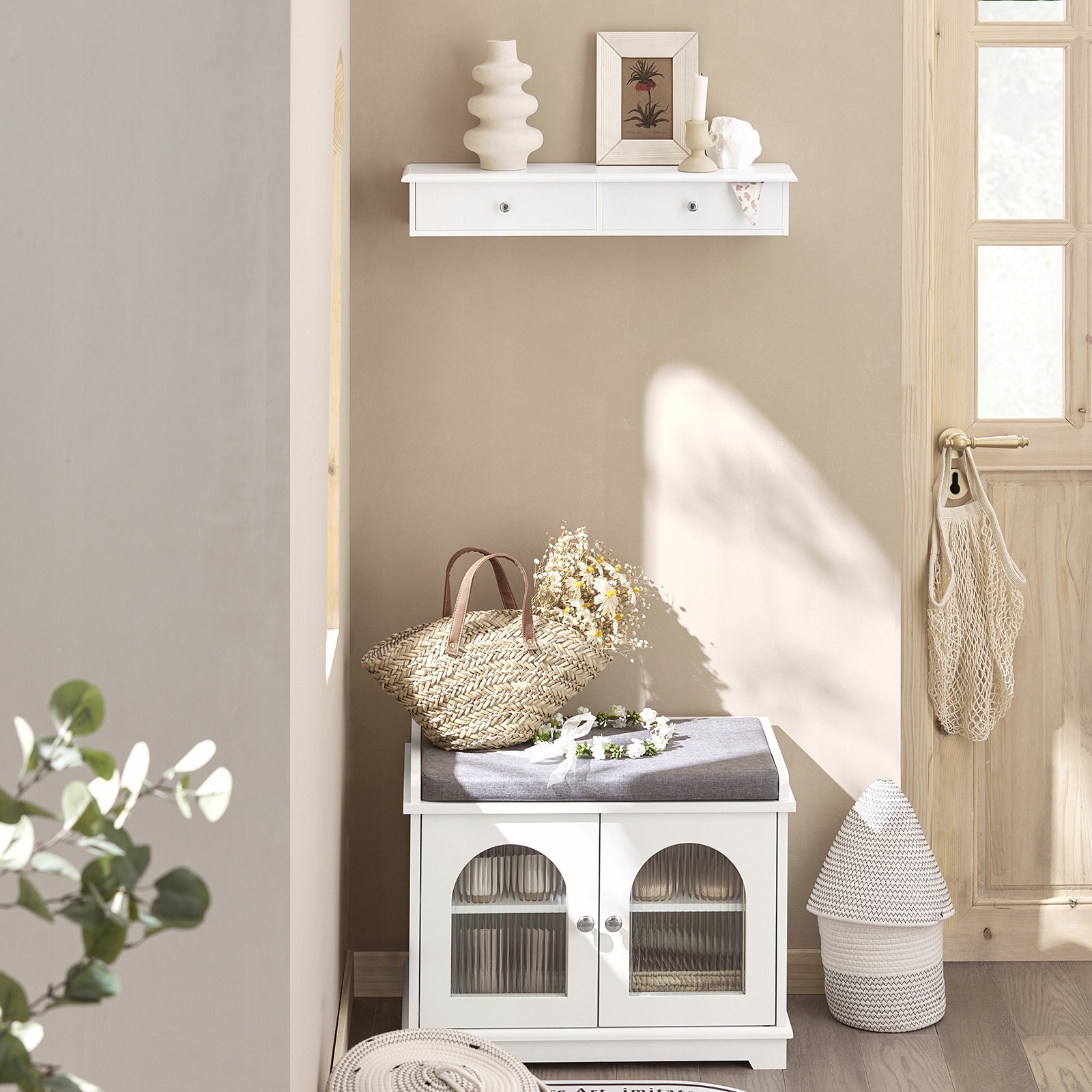 Sobuy Baltas sieninis pakabinamas su 2 stalčiais lentynų stovas svetainei FRG43-W