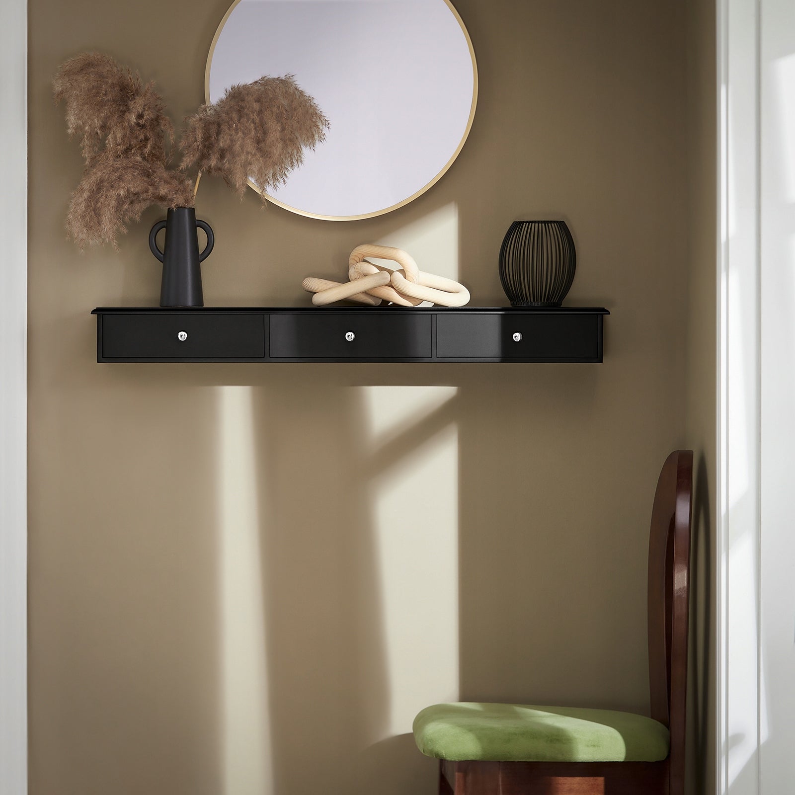 Sobuy Sieninė pakabinama lentyna su 3 stalčiais, miegamojo lentyna FRG43-L-SCH