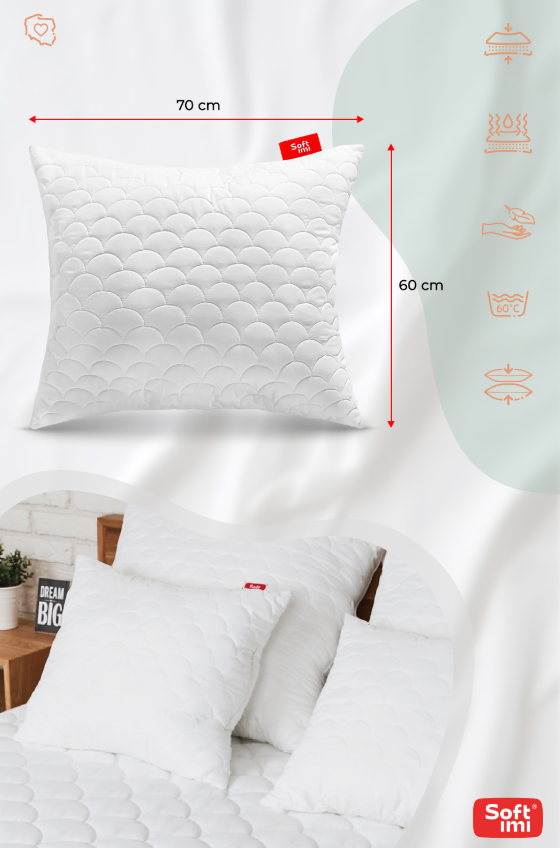 Softimi 2 vnt. antialerginės pagalvės, 60×70 cm. Šios storos, dygsniuotos pagalvės su užtrauktuku leis reguliuoti užpildą pagal savo poreikius. Išorinis užvalkalas – aukštos kokybės mikropluoštas, viduje – elastingas, minkštas ir antialerginis silikonizuotas poliesteris. Be to, produktas pagamintas Lenkijoje su ypatingu dėmesiu detalėms: neleidžia kauptis dulkių erkutėms, užtikrina tinkamą oro cirkuliaciją ir ilgalaikį naudojimo komfortą. Leidžia reguliuoti aukštį bei tvirtumą – prisitaiko prie miego įpročių, be to, lengvai prižiūrimas bei plaunamas užvalkalas.