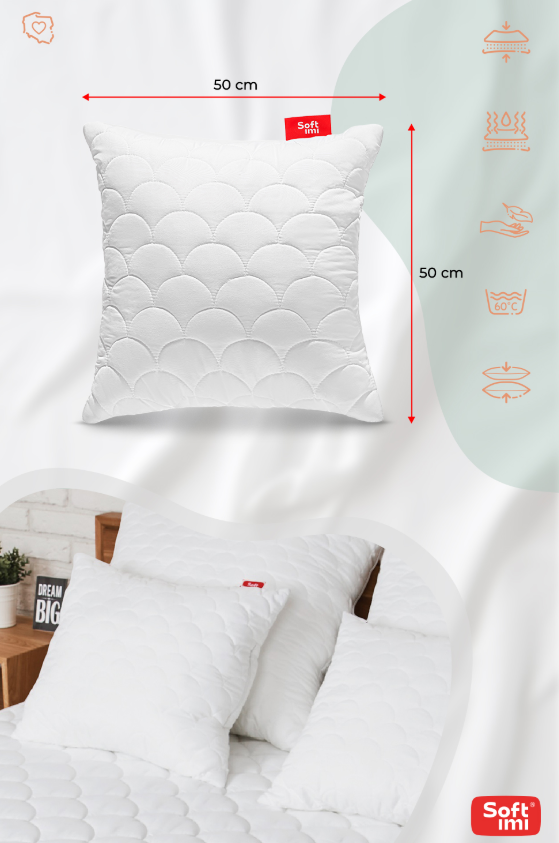 Patogi miego aplinka prasideda nuo minkštos ir švarios pagalvės. Ši Softimi antialerginė pagalvių pora (2 vnt.) – tai puikus pasirinkimas alergiškiems ir jautrią odą turintiems žmonėms. Pagalvės matmenys – 50×50 cm, viršus dygsniuotas, taip užtikrinamas tolygus užpildo pasiskirstymas. Antialerginis, silikonizuotas pluoštas suteikia purumą, yra kvėpuojantis ir puikiai palaiko formą. Pagalvės turi užtrauktuką, leidžiantį reguliuoti užpildą pagal individualius poreikius. Audinys – lengvai valomas mikropluoštas, o užpildas – atitinkantis aukštus kokybės standartus.