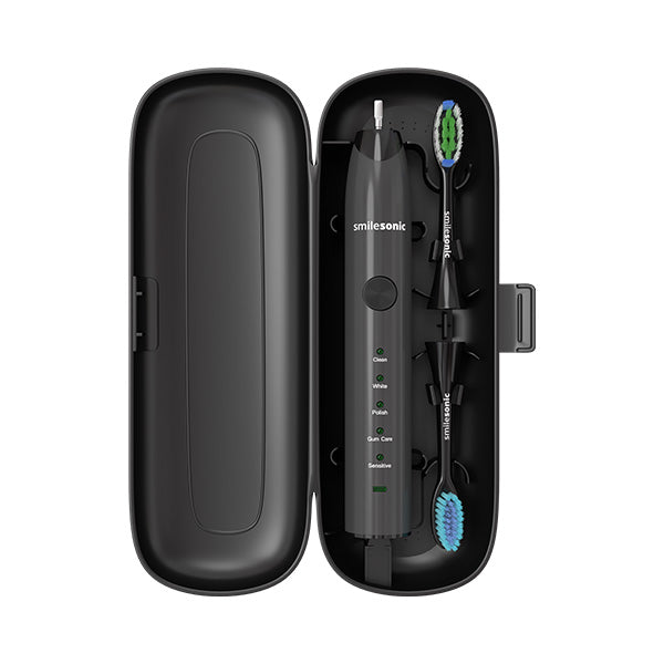 Šis elektrinis dantų šepetėlis „Smilesonic EX Black“ yra komplektuojamas taip, kad atitiktų visus Jūsų burnos priežiūros poreikius iš karto po išpakavimo. Kartu su pagrindiniu įrenginiu gausite ir keturis skirtingus antgalius, leidžiančius pritaikyti valymą specifinėms situacijoms. Taip pat, viskas paruošta kelionėms – pridedamas tvirtas kelioninis dėklas, apsaugosiantis šepetėlį ir antgalius. Rūpinamės ne tik švara, bet ir patogumu bei ilgaamžiškumu, todėl komplekte rasite ir higieniškas apsaugines dangtelius antgaliams.