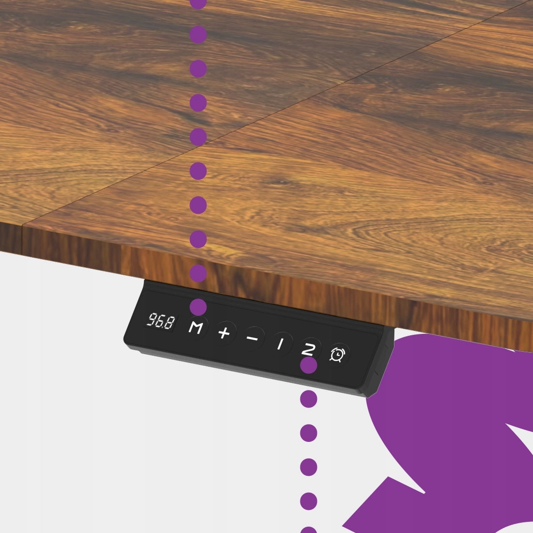 Intuityvus LED valdiklis palengvina biurko naudojimą. Jis ne tik rodo tikslų stalviršio aukštį, bet ir leidžia išsaugoti iki 3 mėgstamų pozicijų. Vienu mygtuko paspaudimu biurkas automatiškai persikels į pasirinktą aukštį – tai taupo laiką ir užtikrina, kad visada dirbsite patogiausioje padėtyje. Integruotas priminimo apie pozicijos keitimą signalas padeda nepamiršti daryti pertraukėlių ir judėti, taip rūpinantis ilgalaike savijauta.