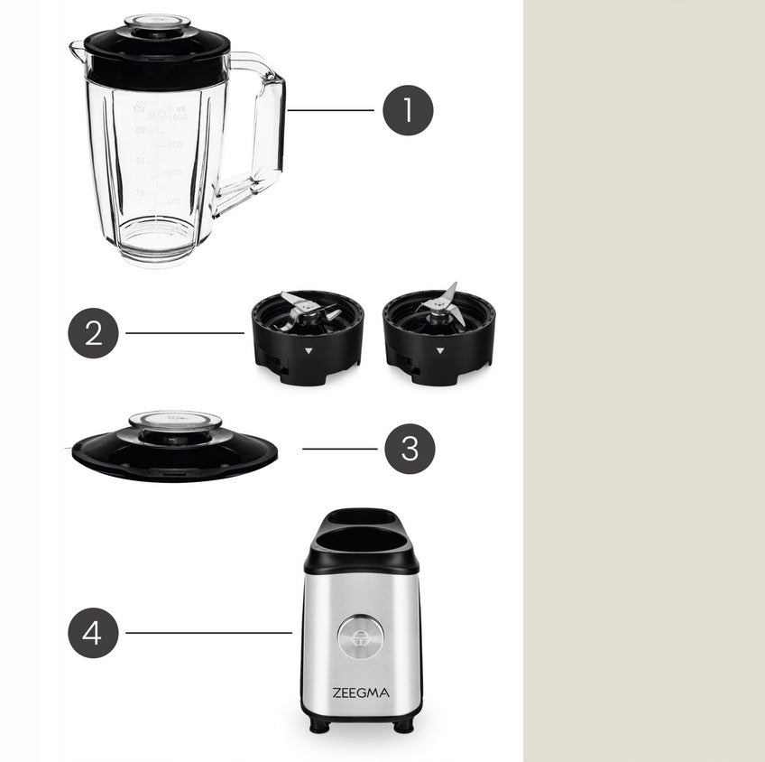 Zeegma Vitamine sukurtas maksimaliam vartotojo patogumui. Jo intuityvi konstrukcija leidžia lengvai surinkti ir išardyti prietaisą, o daugumą su maistu besiliečiančių dalių (stiklainį, buteliukus) galima plauti indaplovėje. Jei norite greitai atlikti pirminį valymą, tiesiog įpilkite į stiklainį litrą šilto vandens ir trumpai paleiskite prietaisą – jis pats išsiplaus daugumą likučių. Visi su maistu besiliečiantys elementai yra pagaminti iš aukščiausios kokybės, BPA neturinčių medžiagų, tad galite būti tikri dėl savo ir artimųjų sveikatos.