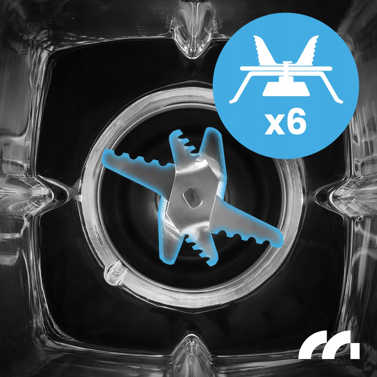 - 6 nerūdijančio plieno ašmenys: Užtikrina ypač švelnią ir vientisą konsistenciją.
