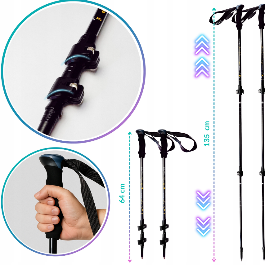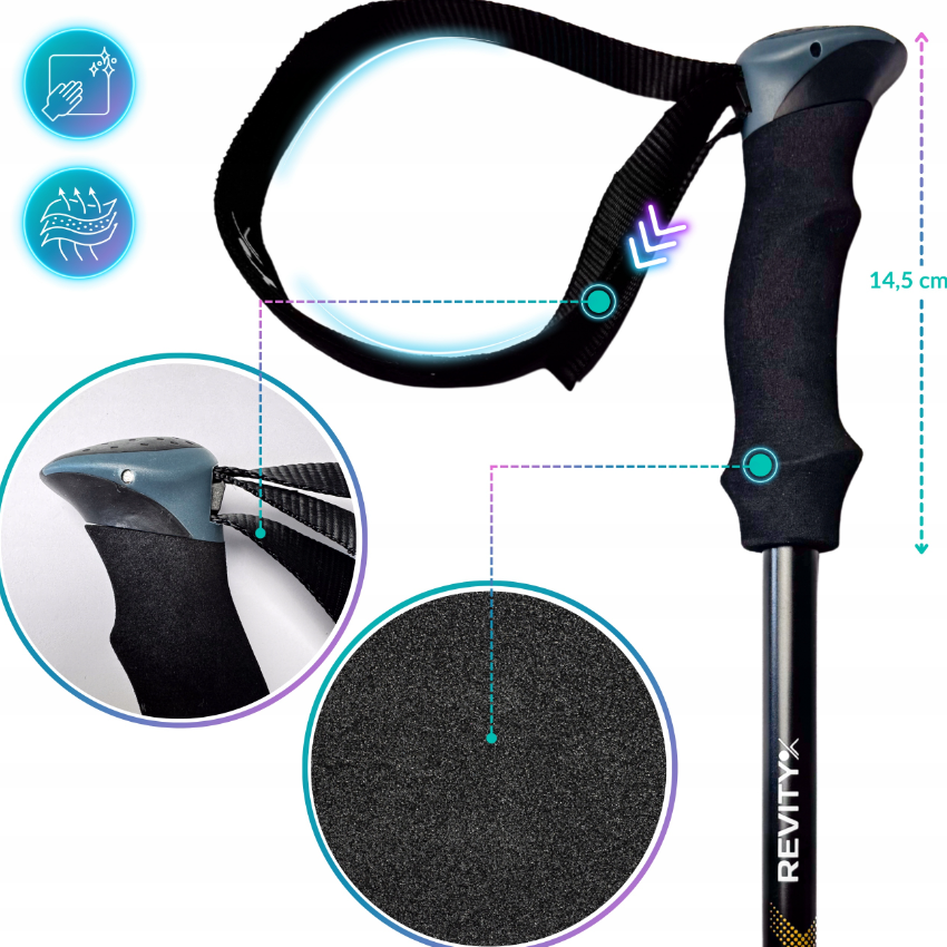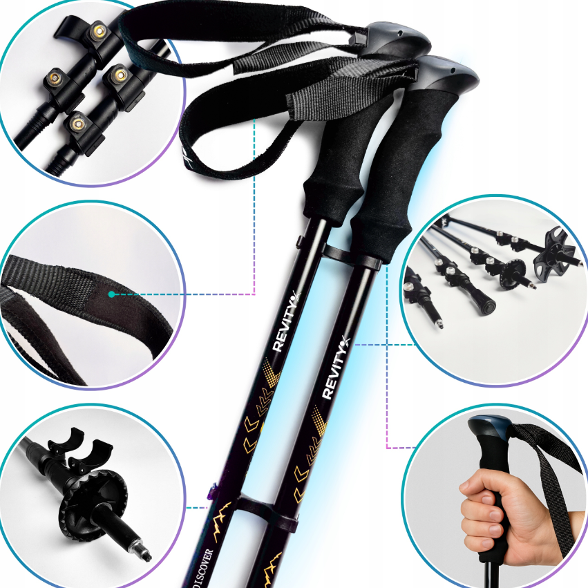 Sulankstomos ir reguliuojamos žygių lazdos "Revity"