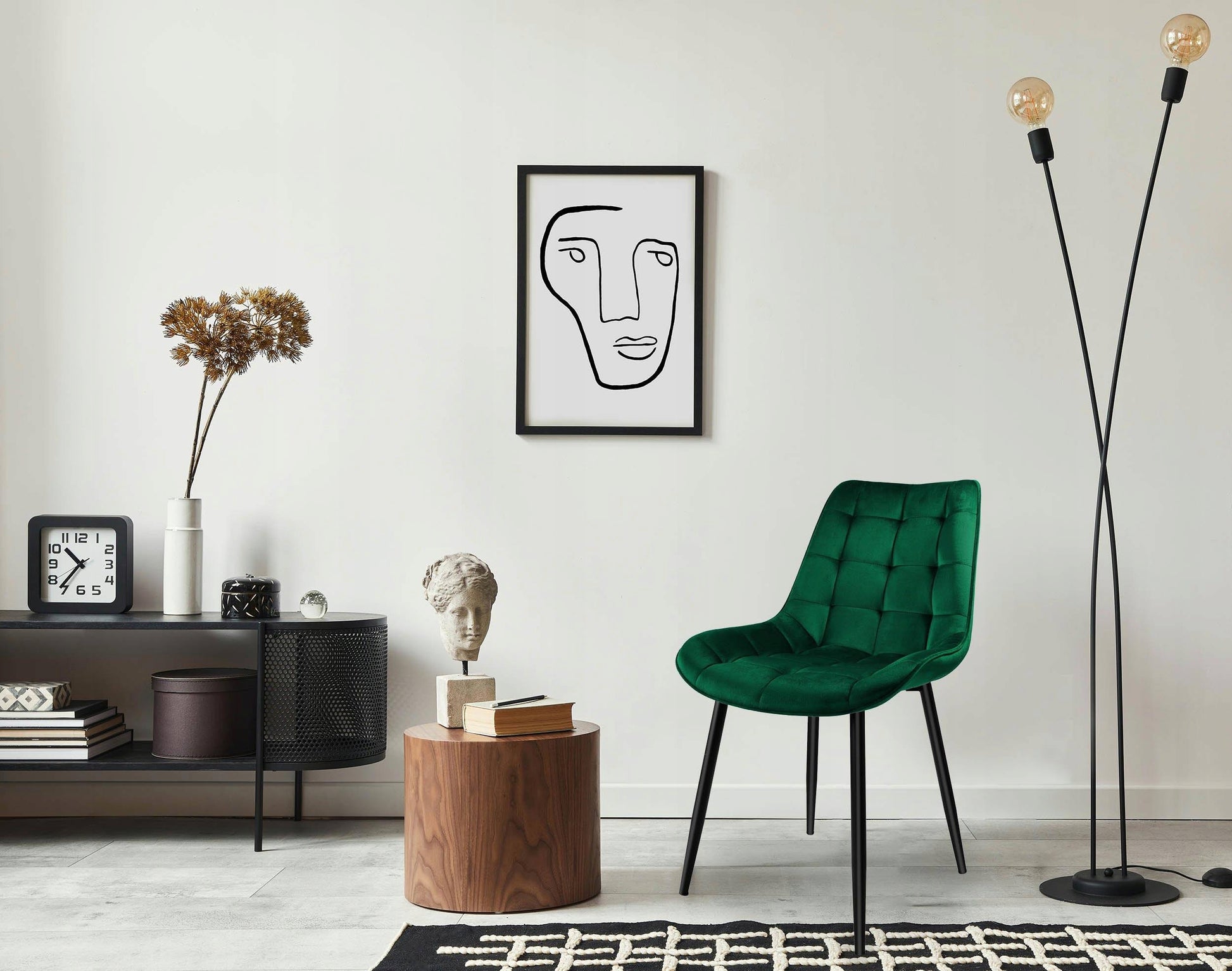Ši kėdė puikiai tiks ne tik kaip prie valgomojo stalo, bet ir kaip akcentinis baldas svetainėje, prie konsolinio staliuko ar net miegamajame. Jos tiesios, tvirtos kojelės suteikia modernumo ir stabilumo, o minkštas veliūro apmušalas kviečia atsipalaiduoti. Tamsiai žalios spalvos aksomas sukuria prabangos ir gamtos artumo jausmą, todėl ši kėdė gali tapti jūsų mėgstamiausia vieta namuose.