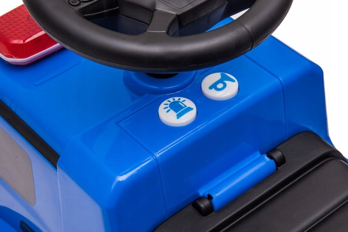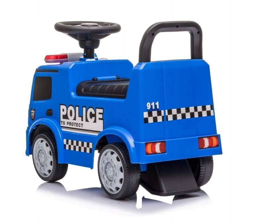 Šis policijos automobilio stumdukas sukurtas atsižvelgiant į vaikų saugumą ir komfortą. Jis pasižymi tvirta, stabilią konstrukcija, plačiai išdėstytais ratukais, užtikrinančiais stabilumą ir apsaugančiais nuo apvirtimo. Ergonomiška sėdynė su atlošu garantuoja patogumą net ir ilgesnės kelionės metu. Po sėdyne įrengta talpi daiktadėžė, kurioje mažylis gali susidėti mėgstamus žaislus, smulkius daiktus ar „nusikaltėlių“ gaudymo įrankius. Automobilio dizainas yra ne tik patrauklus, bet ir funkcionalus, skatinantis savarankiškumą.