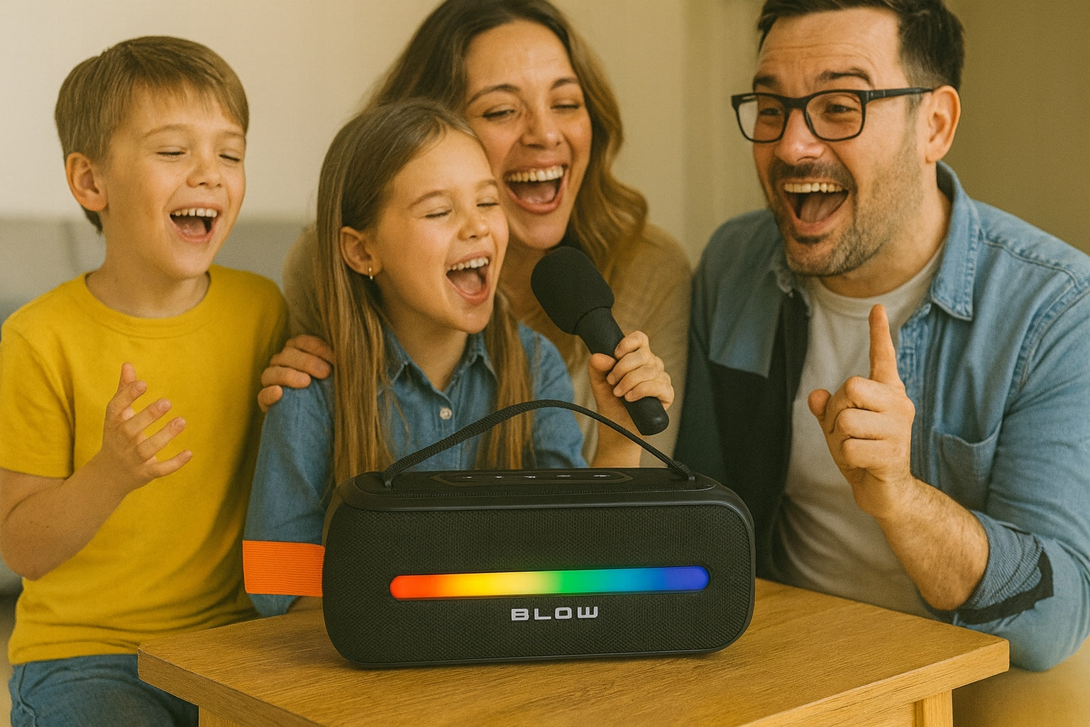 Vienas svarbiausių šio garsiakalbio privalumų – komplekte esantis belaidis mikrofonas. Jis atveria duris į pasaulinį karaoke pasaulį, leidžiantis vaikams išreikšti save, dainuoti mėgstamas dainas ir organizuoti šeimos pasirodymus. Tai puiki priemonė ne tik linksmybėms, bet ir bendravimo įgūdžių bei pasitikėjimo savimi ugdymui. Mikrofonas yra lengvas ir paprastas naudoti, todėl net mažiausi vaikai lengvai su juo susidoros. Bendras dainavimas su tėvais ar draugais – tai neįkainojama laiko kartu kokybė ir puikus būdas stiprinti šeimos ryšius.