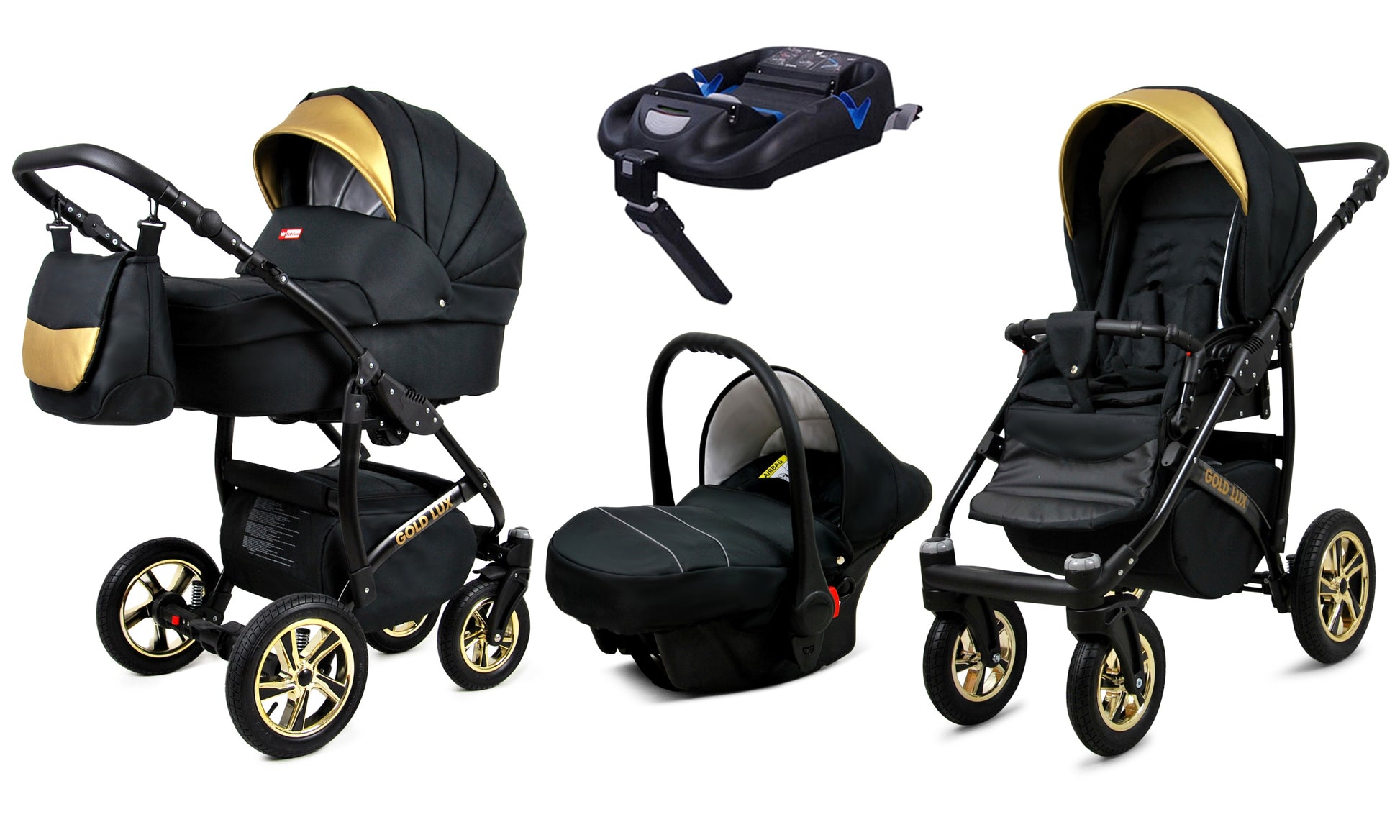 Vaikutis vežimėlis 4in1 BabyLux Gold Lux sportinė dalis, gondola, automobilinė kėdutė, ISOFIX bazė