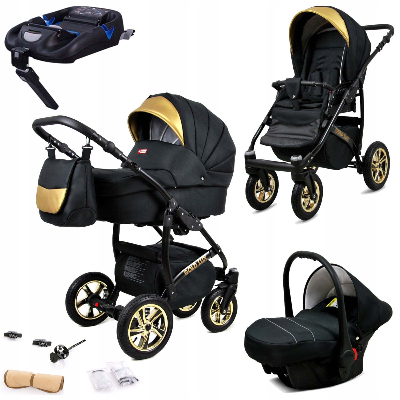 Kadangi rūpinamės Jūsų patogumu, „BabyLux Gold Lux 4w1“ komplektas yra išsamus ir apgalvotas iki smulkmenų. Jame rasite viską, ko reikia nuo pat pirmųjų mažylio gyvenimo dienų: