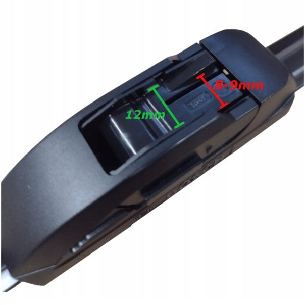 - Galutinis valytuvų ilgis (650 mm ir 400 mm) yra standartinis, tačiau skirtinguose automobilių modeliuose gali būti nedidelių gamintojo nustatytų originalių matmenų skirtumų. Jei abejojate, matmenis geriausia palyginti su jau sumontuotais valytuvais.